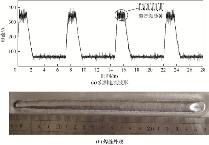 提出了一种全新的脉冲熔化极气体保护焊(GMAW)方法,并研制出新型超音频复合脉冲GMAW电源,即在传统脉冲GMAW电流基础上复合叠加频率为20~80 kHz、电流幅值为0~100 A、占空比为0%~100%的连续可调的超音频脉冲电流。设计了并联结构的主电路拓扑及MCU+DSP双处理器数字化控制系统,通过软件编程实现了电流给定信号与PWM信号的同步输出及不同逻辑组合,可实现不同工作模式的焊接电流波形输出。对电源输出电流波形的测试结果表明:本文所设计的超音频复合脉冲GMAW电源输出电流波形满足不同工作模式的设计目标,超音频脉冲电流频率在80 kHz时,仍保持较快的电流上升沿与下降沿变化速率。初步进行了铝合金平板堆焊试验,焊缝成形良好。