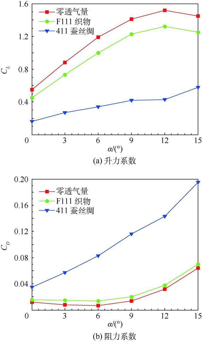 为了提高翼伞的飞行性能,需要研究伞衣织物透气性对翼伞气动特性的影响。使用不可压雷诺时均Navier-Stokes(RANS)方程模拟伞衣外部流场,建立了包含附加动量源项的多孔介质域控制方程模拟伞衣,对2种透气性材料模型和无透气性影响传统模型的气动特性和流场分布进行了二维和三维定常数值模拟。数值结果表明,求解多孔介质域控制方程可以得到较准确的伞衣透气速度,伞衣表面的湍流度急剧增加;使用较大透气量材料制作伞衣时,升力系数大幅下降,阻力系数大幅上升,同时会造成内腔泄压影响翼伞的外形保持;使用微透气量材料制作伞衣时,升力系数在小迎角时小于不透气模型,在大迎角时大于不透气模型,较小的透气速度能在大迎角时延缓边界层分离。