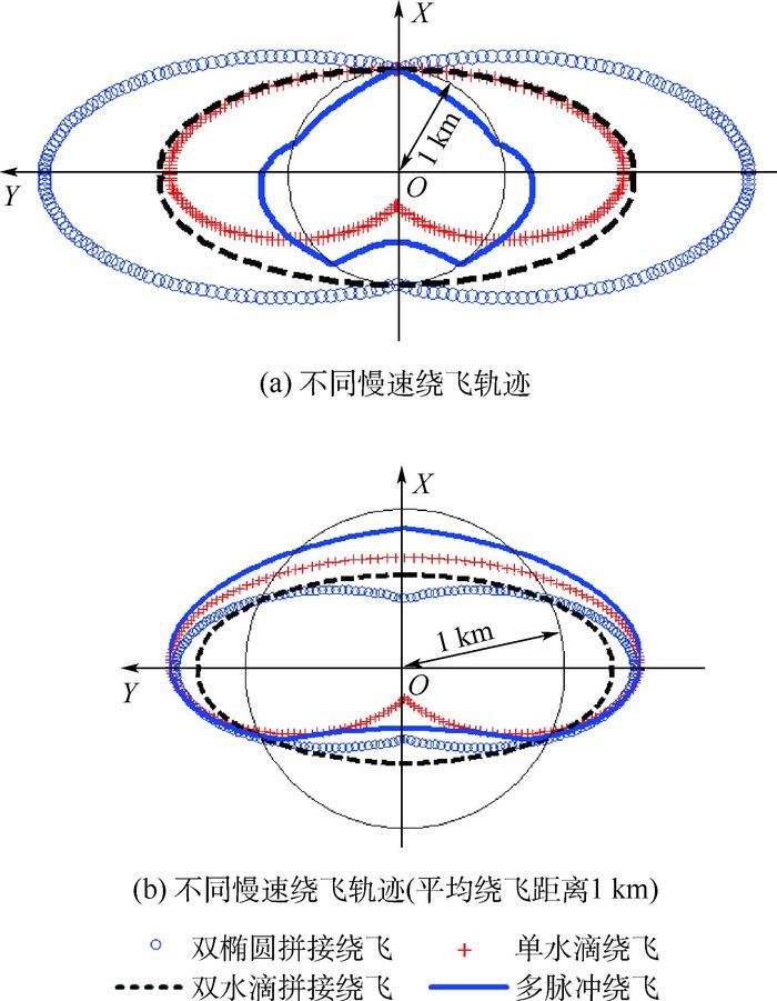 针对航天器在轨服务任务对绕飞技术的要求,研究了航天器受迫绕飞构型设计和控制问题。基于C-W(Clohessy-Wiltshire)方程的解析解,提出了双水滴拼接绕飞构型,并将单脉冲或双脉冲受迫绕飞延展至多脉冲绕飞构型设计;推导了伴随航天器初始状态变量与绕飞构型形状参数的关系,得到了4种构型的解析表达式和脉冲控制策略。通过数值仿真算例验证了设计的4种绕飞构型能够实现伴随航天器的慢速绕飞和快速绕飞,比较了不同绕飞构型的燃料消耗和绕飞距离误差。数值结果表明,双水滴拼接绕飞构型总脉冲最小。研究成果完善了航天器受迫绕飞构型设计与控制的相关理论,为工程应用提供参考。