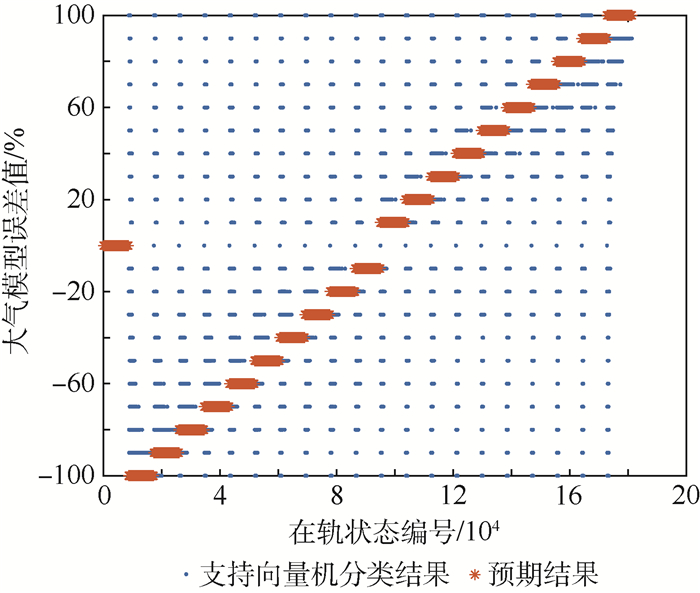 针对经验的空间大气模型会在轨道预报中造成较大的误差,以某型号卫星作为基准航天器,提出2种不同精度的轨道预报模型作为仿真基础,以产生训练数据和测试数据。利用3种数据挖掘中的分类方法,如支持向量机(SVM)、神经网络(NN)、随机森林(RF)等方法,对空间大气模型在轨道预报时造成的误差进行监督学习,借此反演误差简化模型中大气模型的偏差并进行修正。分类器的训练结果表明,随机森林方法由于随机选择决策树、随机选择分类项目,按照最大概率反演的大气模型误差准确率高达99.99%,支持向量机次之,最大准确率仅为50.7%,前馈负向传播神经网络容易出现不学习的情况,应用效果最差。相比传统数理统计方法,本文方法具有快速处理大数据集、能够挖掘隐藏在轨道预报微小误差中的潜在信息等优势。