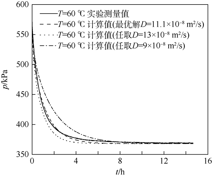 CO2在航空燃油中的质量扩散规律对飞机油箱惰化系统的研究极其重要。搭建压力降法实验装置测量CO2在RP-3航空燃油中的扩散系数,实验测试了-20、0、20、40和60℃恒温条件下的CO2气相空间压力随时间变化关系。根据Fick定律建立了容器中二维扩散方程,并采用数值解法,设定扩散系数值,求解气体在航空燃油中的浓度分布,根据质量守恒和实际气体状态方程可得到CO2气相空间压力,并与实验记录的气体压力进行比较。以扩散系数为自变量,推导了实验与理论计算误差函数,并采用Husain单一变量搜索法,使误差函数值最小,可得到扩散系数最优解。研究还显示CO2在RP-3航空燃油中的扩散系数随温度升高而增大,满足Arrhenius方程。