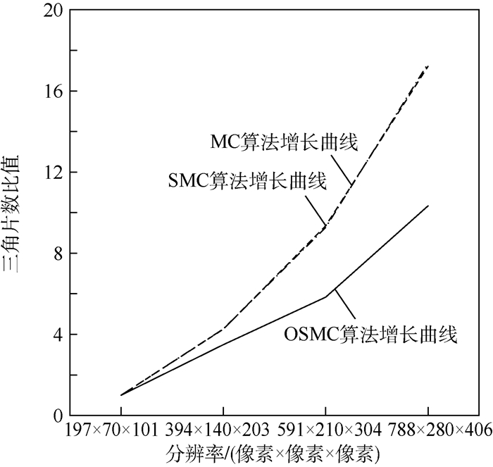 采用简化构型的SMC算法相比标准MC算法能够有效减少构成等值面的三角片的数量,但因为其仅是在体元内部的简化,所以不能较好地利用数据集表面局部形态特征。针对这一问题进一步提出OSMC算法。其根据简化构型的特点,首先采用八叉树结构组织体元,然后采用自底向上的合并策略合并节点,最后实现局部区域三角片合并。实验证明:OSMC算法能够实现比SMC算法更多的三角片削减,尤其对于具有较多平坦区域的数据集效果显著,其对公开数据集数据的平均削减率为55.1%,而SMC算法为29.7%,在面对高分辨率的地质数据时其最高削减率达到了80%,平均也超过了50%,同时OSMC算法能够更好地适应数据集分辨率的增长。