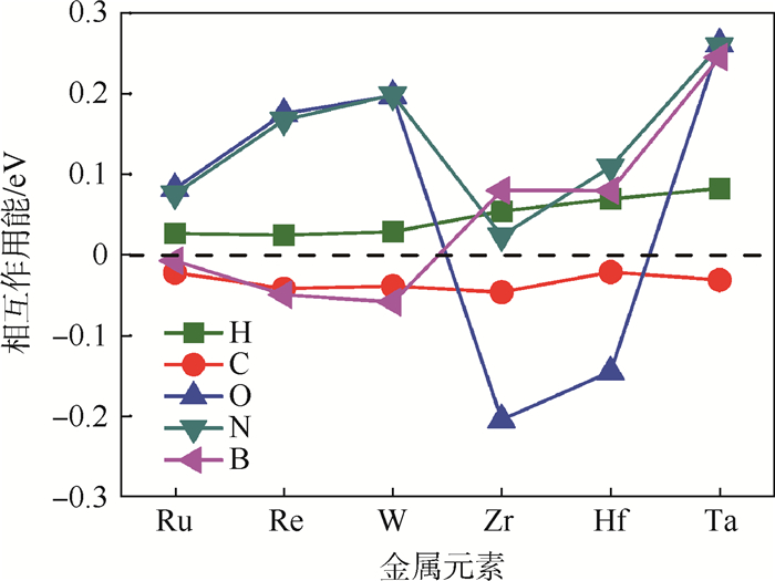 采用基于密度泛函理论的第一性原理计算方法,研究了常用合金化元素与非金属元素在晶界(GB)的偏析及其相互作用。选取2种类型的晶界结构进行研究:密排的晶界和较疏松的晶界。溶解能计算表明,金属和非金属元素在∑5晶界上均有明显的偏析行为,而在∑3晶界上的偏析现象不明显。通过计算常用过渡族合金化元素与非金属杂质C、H、O、N、B在各自最稳定位置的相互作用能,发现Ru、Re、W和Ta对O有强烈的排斥作用,因此对晶界抗氧化有益处;Ta排斥H,有抗晶界氢脆的效果。通过对金属元素与非金属元素在晶界上相互作用的系统研究,为Ni合金的晶界工程提供有价值的参考。