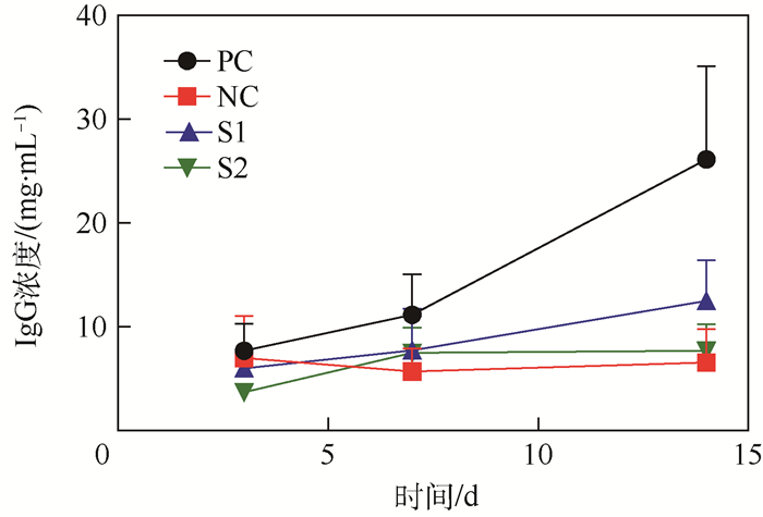 免疫应答反应一直是限制可植入生物材料应用的关键因素之一。实验评估了2种用于骨修复的胶原膜在体内的免疫反应,希望为其临床试验提供依据。在将2种膜皮下植入到BALB/c小鼠后的第14天,与阴性对照(NC,未植入材料)相比,脾和淋巴结没有明显肿大,淋巴结细胞数几乎没差异,而脾细胞数大约是NC的2倍。流式细胞术分析显示植入胶原膜1导致脾中T细胞比例减少了约13%,但是没有影响T细胞亚群,而植入胶原膜2对小鼠的脾细胞组成没有明显影响;2种胶原膜都激活了一定的B细胞,激活率大约为NC小鼠的2倍。淋巴细胞体外增殖实验显示与NC组无显著差异。酶联免疫吸附测试表明胶原膜1导致了第14天血清中的抗体浓度升高至NC小鼠的2倍。局部H&E染色显示2种材料都引起了轻微的细胞浸润。这2种胶原膜引起的免疫反应很微弱,可以被应用于临床试验。