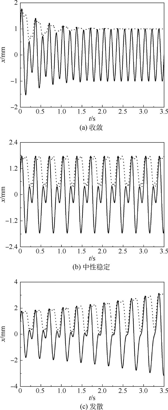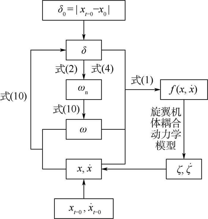 针对现有适于宽幅值范围的黏弹减摆器模型一般含有动幅值参量,不便用于幅值变化的直升机旋翼/机体耦合动稳定性时域分析的问题,给出了小摆振阻尼比时,黏弹减摆器在单频及双频条件下动幅值参量的计算方法,运用该方法计算系统在收敛、中性稳定及发散3种情况下的幅值曲线,较好地反映了响应幅值在时域上的变化趋势。将改进的黏弹减摆器模型用于直升机地面共振非线性时域分析,为准确获取旋翼摆振后退型响应,给出了所需桨叶激振力矩的计算方法,在不同转速不同复模量状态下,采用该方法确定的激振力矩对桨叶进行激振激出的响应幅值与预期值误差不超过6%。对摆振后退型响应进行分析可知,系统稳定时,与线性化结果相比,计入黏弹减摆器非线性后,旋翼摆振后退型响应衰减更快,其模态阻尼在时域上呈增加趋势。