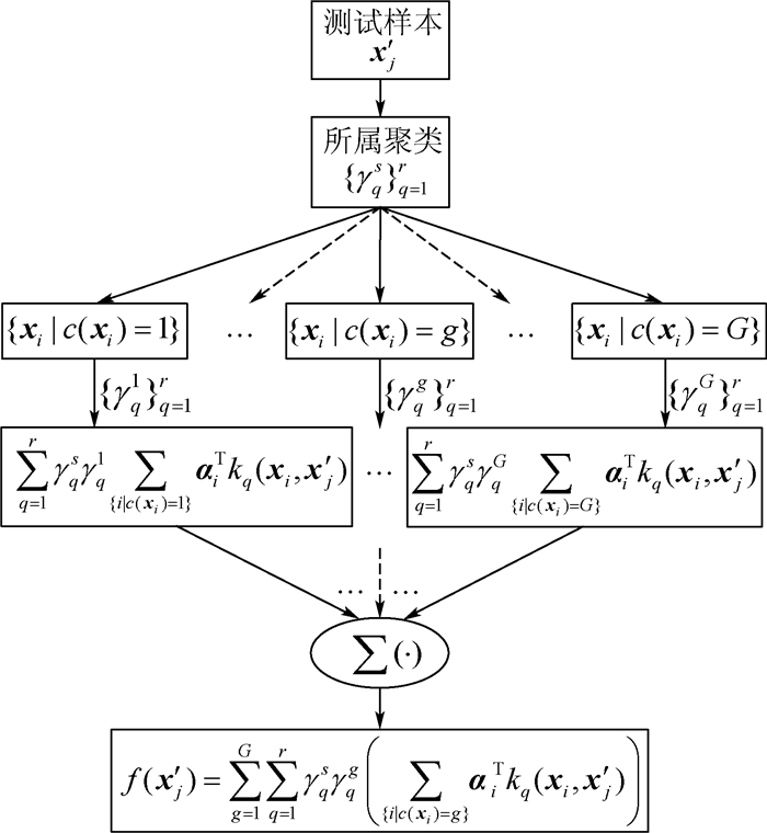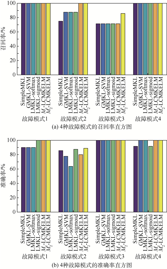 针对小样本条件下,航空电子部件功能模块故障诊断精度不高的问题,将局部多核学习(LMKL)算法的多分辨率解释与局部特征自适应表示能力和超限学习机(ELM)运算高效的特点相结合,提出一种新的局部聚类MK-ELM(LCMKELM)诊断模型。通过引入近邻传播(AP)聚类,在挖掘训练样本局部特征信息的同时,有效约减了局部算法的计算复杂性,避免了过学习问题的出现;通过分别分析输入空间与特征空间的聚类特征,构造了相应的2种选通函数M1M2,以优化选通函数的模型参数取代优化局部权重,有效解决了核超限学习机(KELM)的对偶优化形式关于局部权重二次非凸的问题。将本文模型应用于某型机旋转变压器激励发生电路功能模块故障诊断,结果表明:相比于4种常用的多核诊断算法,模型在实现低漏警、低虚警的同时,采用M1选通函数的诊断算法将诊断精度平均提升了3.80%,采用M2选通函数的诊断算法将诊断精度平均提升了5.98%。同时,模型在实现与流行的LMKL算法相近的训练时间的同时,测试时间更短。