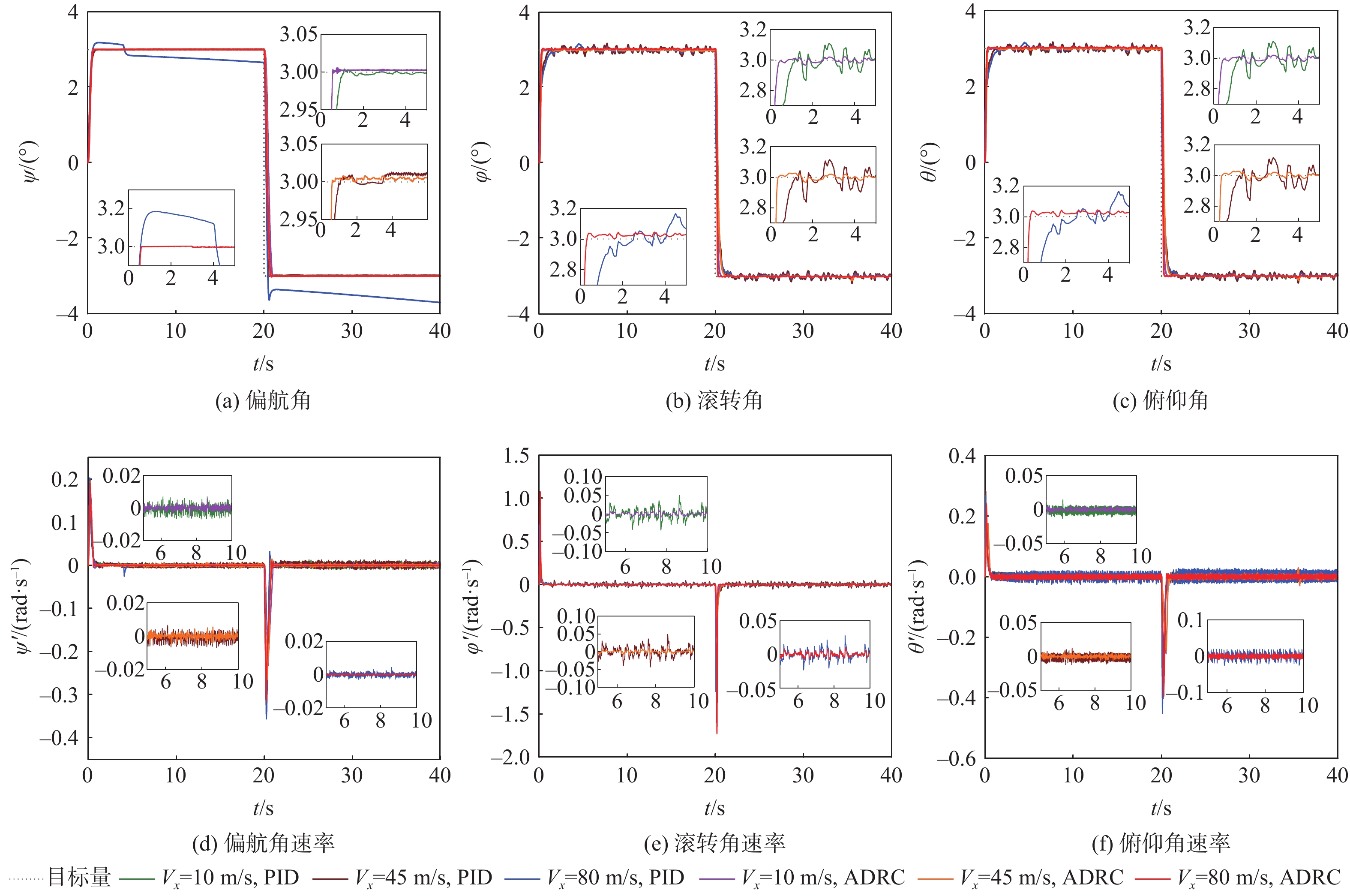 复合式无人直升机涉及多个冗余操纵输入,输入策略不同飞行器输出响应也就不同,该系统则是一个非线性强耦合的被控对象。因系统内部高阶动力学难以建模、外部扰动不明确,给飞行控制系统设计验证带来极大困难。为使复合式无人直升机在整个飞行包线内稳定飞行,姿态控制律设计至关重要。在建立复合式无人直升机运动特性数学模型基础上,设计不同飞行模式操纵策略,构建被控对象Simulink仿真模型。运用自抗扰控制(ADRC)技术设计姿态ADRC器,再以对比方法验证姿态ADRC的控制效果好于姿态比例积分微分PID控制器。仿真结果表明:姿态ADRC的抗干扰性和鲁棒性能满足复合式无人直升机姿态控制要求,确保无人直升机在不同飞行模式下快速稳定飞行。