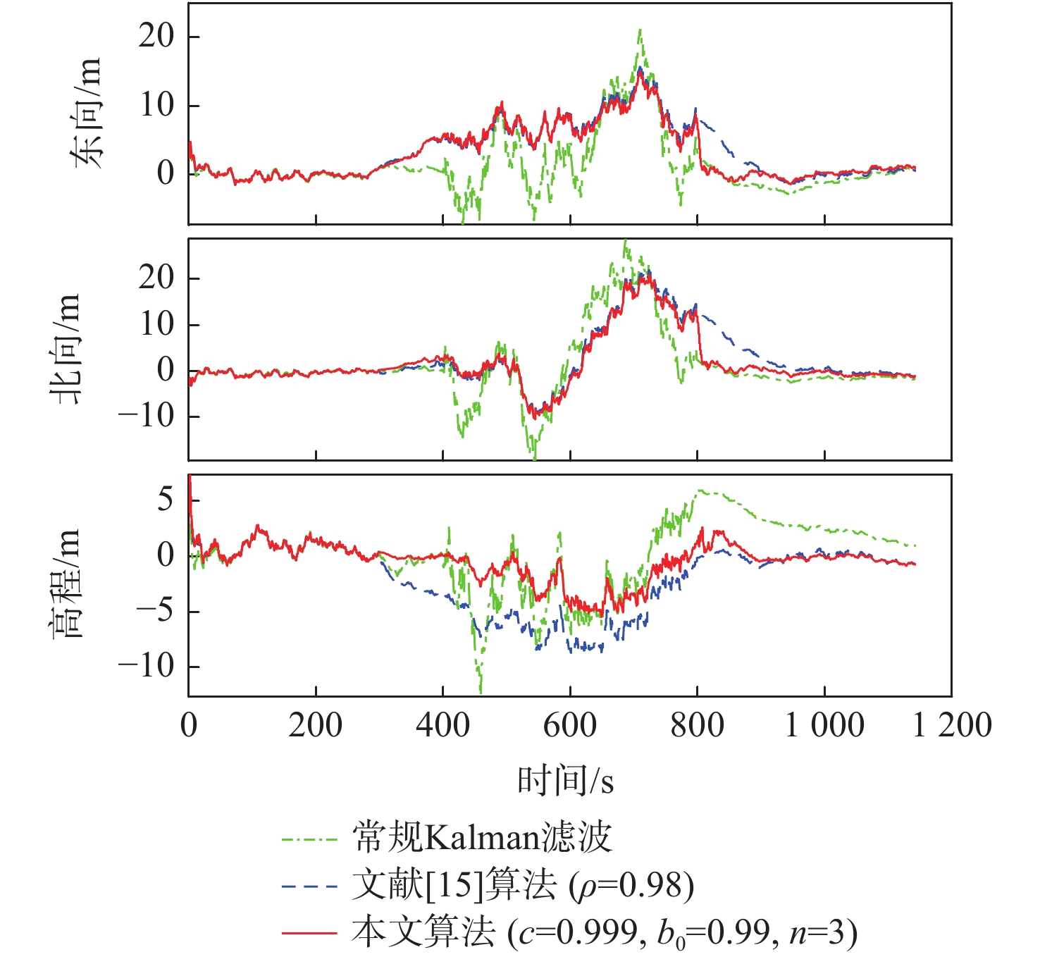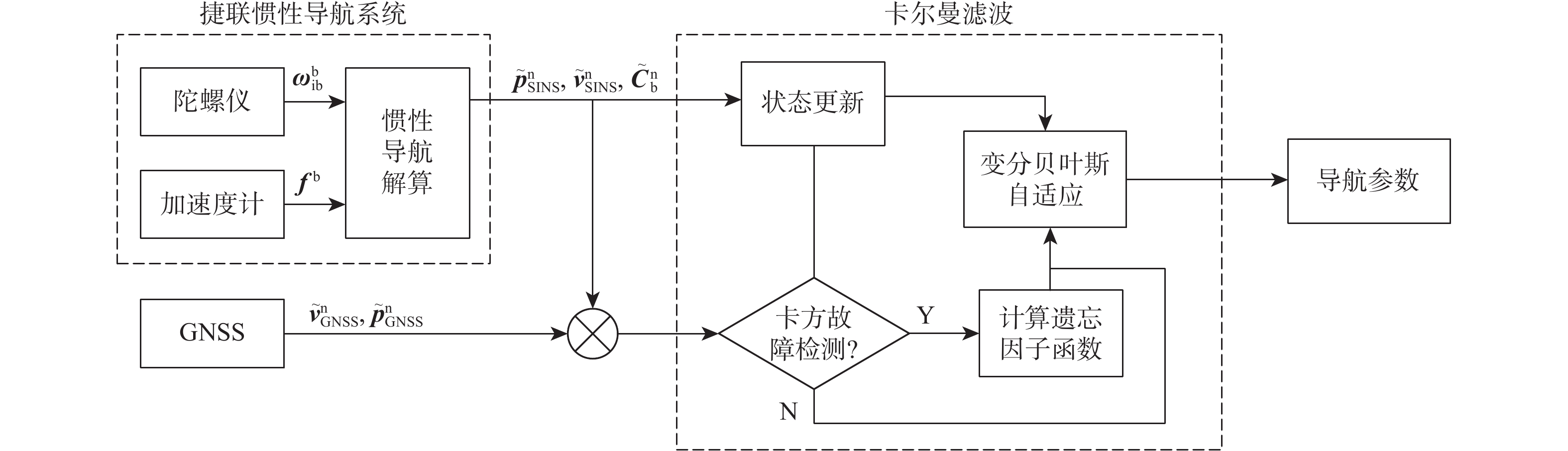 针对全球卫星导航系统/捷联惯性导航系统(GNSS/SINS)组合导航中GNSS信号易受干扰,造成量测噪声突变的问题,提出一种基于可变遗忘因子的渐消记忆变分贝叶斯自适应Kalman滤波(VBAKF)算法。针对自适应滤波中突变噪声难以准确探测,构建基于初值的噪声突变检验准则;为解决自适应滤波估计突变噪声的拖尾现象,将变分贝叶斯自适应滤波的超参数传递结构转化为协方差阵修正结构,通过构造可变遗忘因子函数动态调节自适应滤波中的遗忘因子。仿真和实测数据表明:所提算法可在GNSS/SINS噪声突变时快速估计量测噪声,提高组合导航精度。