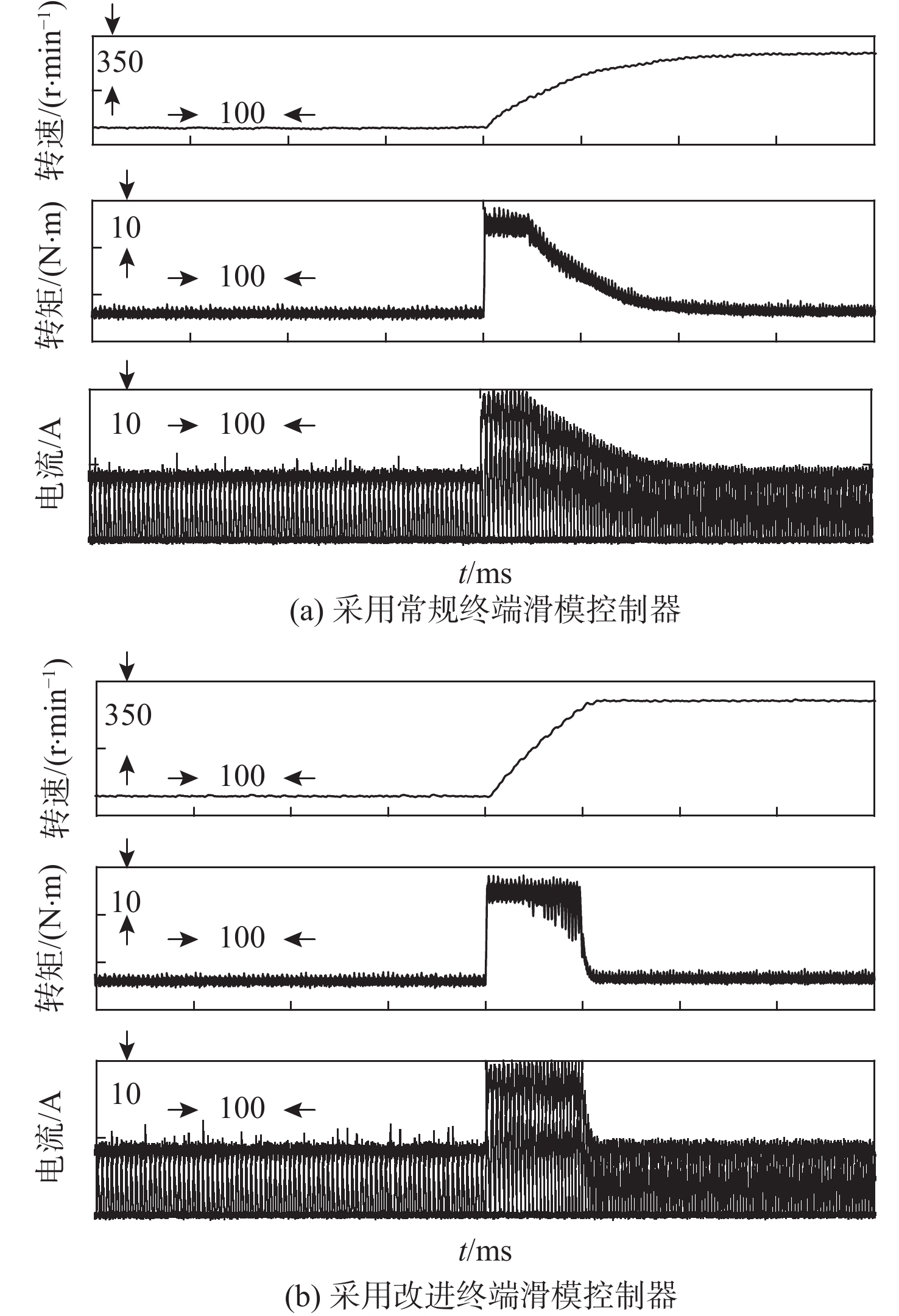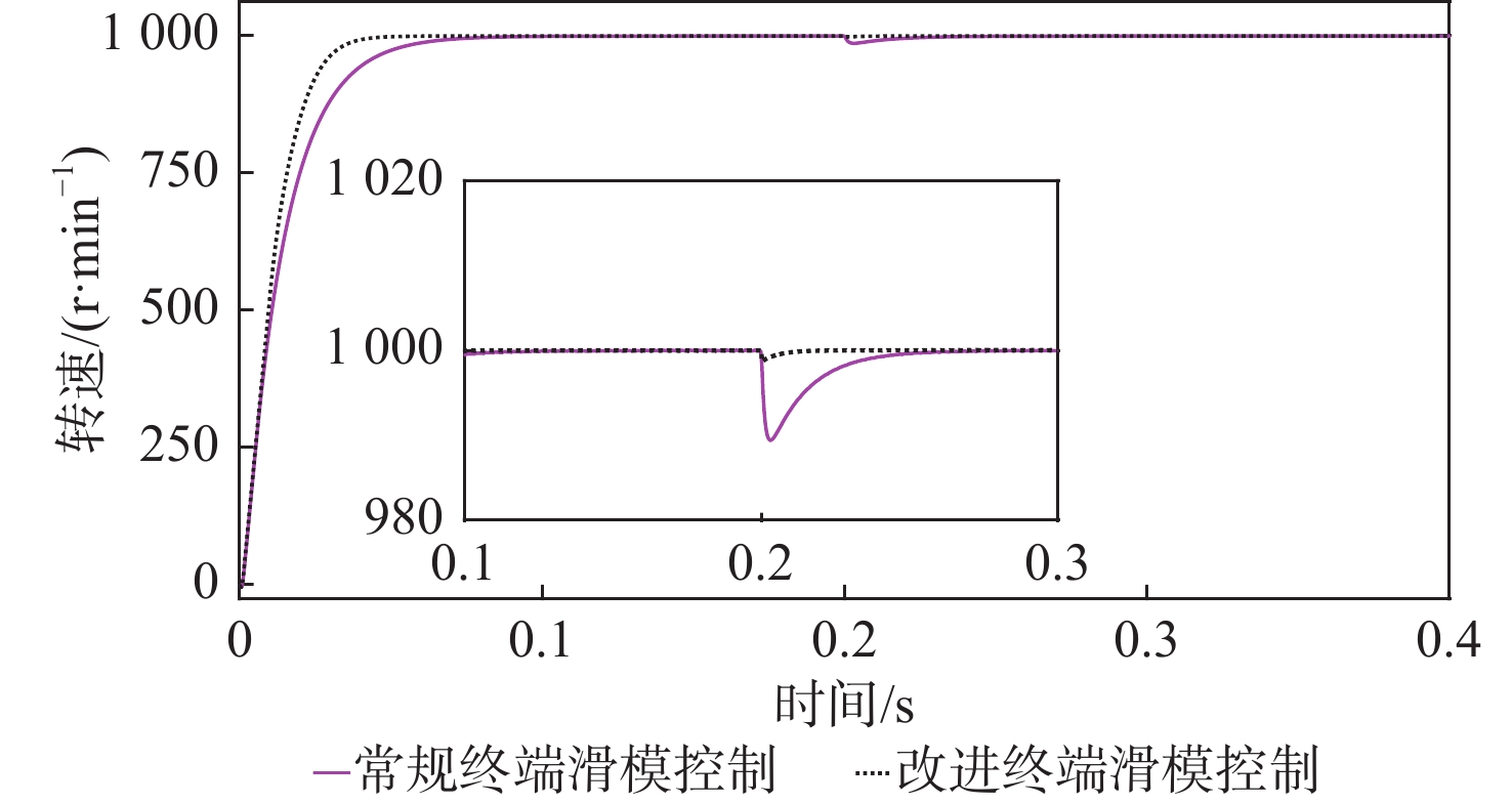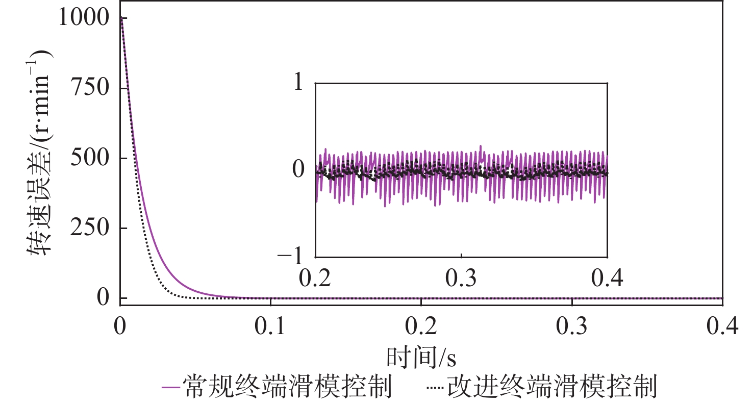 针对开关磁阻电机(SRM)常规终端滑模控制器(SMC)响应速度慢和传统滑模观测器(SMO)存在的抖振问题,提出一种基于改进终端SMC和变速趋近律SMO的SRM瞬时转矩控制(DITC)方法。设计了电机速度误差可快速收敛的改进非奇异快速终端滑模面和可自适应调整趋近律速度的变速幂次趋近律,利用等效控制法,得出了连续非奇异控制律。通过Lyapunov函数证明了该系统的稳定性和有限时间收敛性。设计了变速趋近律SMO以实现SRM无位置传感器控制。采用双曲正切函数作为切换函数,并引入快速幂次趋近律作为SMO速度观测的趋近律,克服了传统SMO固定开关增益带来的抖振和收敛速度问题。通过Lyapunov函数证明了SMO运行的稳定性。仿真和实验验证了所提方法的有效性。结果表明:与常规终端SMC相比,改进终端SMC能够在0.07 s内实现对期望转速的跟踪,调节时间减少了0.04 s,并且系统稳定时转速波动降低了0.5 r/min,具有更好的响应速度和稳定性。在负载突增时,系统转速可在0.02 s内调节至给定值,恢复时间减少了0.05 s,具有更好的调节性能。变速趋近律SMO能够在0.01 s内实现转速估计误差的收敛,且误差波动维持在2 r/min以内,可实现电机转速和转子位置的准确估计。