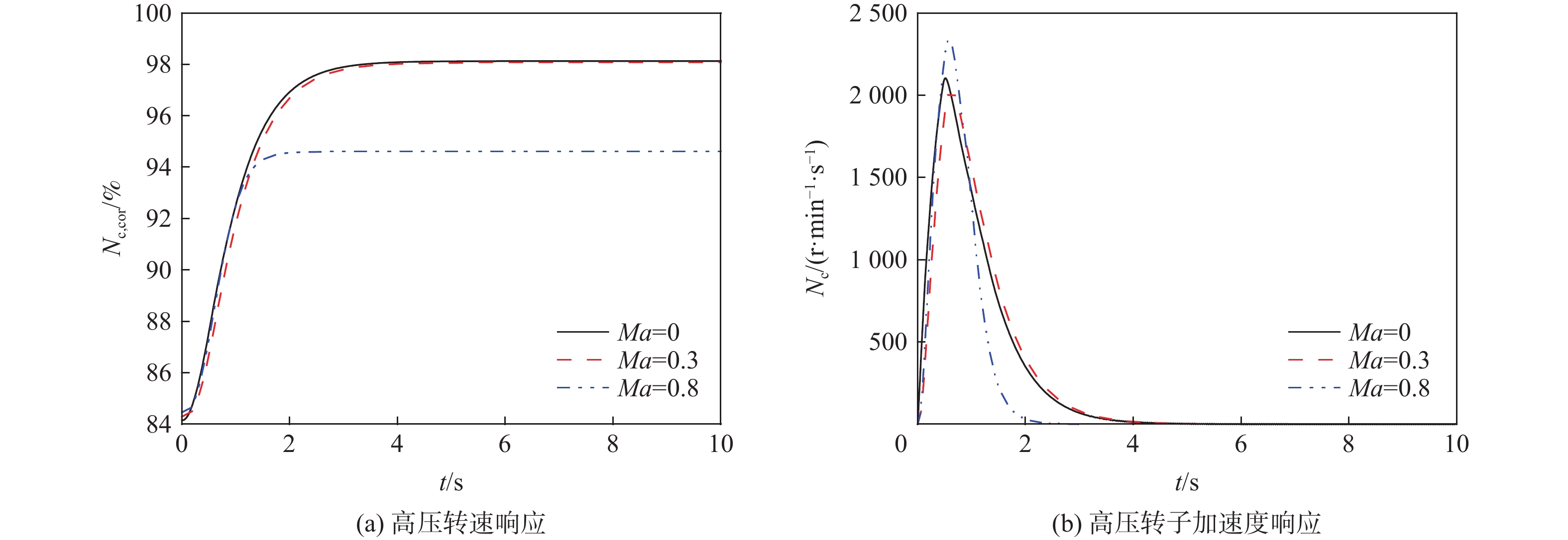 为提升涡扇发动机的加速性能,对传统的转子加速度N-dot控制结构进行了改进,提出了一种基于跟踪误差的主动切换控制策略,在跟踪误差较大时,执行N-dot控制回路,否则执行稳态控制回路。同时提出了基于等高度线的N-dot控制计划制定方法,采用差分进化算法对加速过程进行优化,最大限度地减小与最大转速之间的误差。以优化出的不同高度下最大高压转子加速度作为N-dot控制计划,并采用紧格式动态线性化无模型自适应控制(CFDL-MFAC)算法设计N-dot控制器。与常规Min-Max选择结构下的PID控制N-dot相比,主动切换MFAC的N-dot控制在某中等推力军用涡扇发动机设计点上加速时间减小了0.7 s,在非设计点上加速减少了约1.2 s。