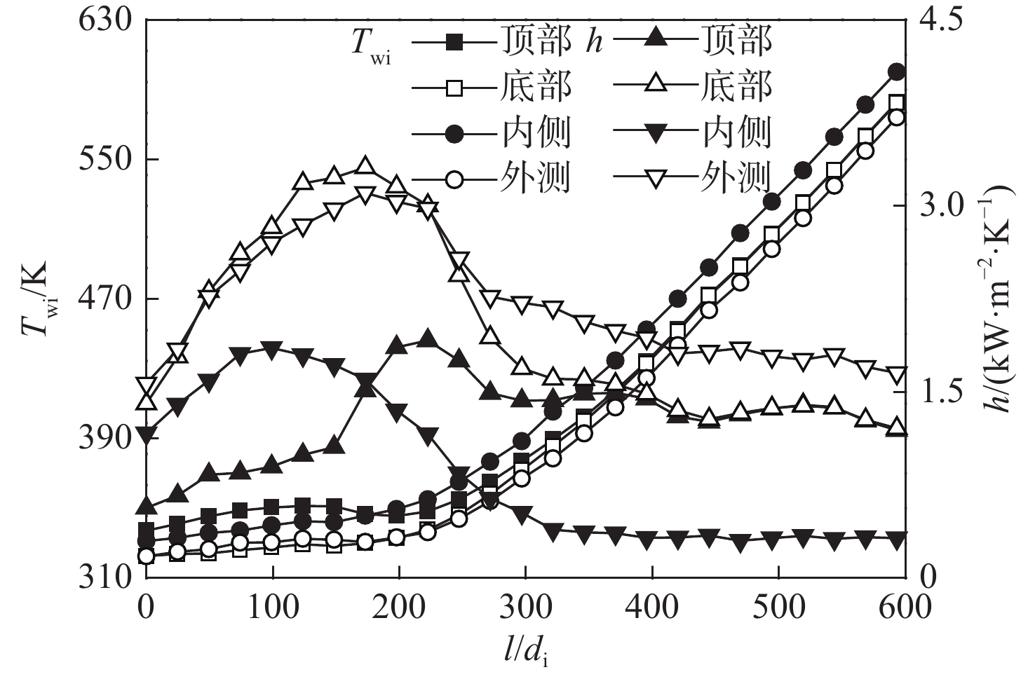 基于航空发动机间冷器的冷却换热问题,进行竖直螺旋管内超临界压力CO2换热数值研究。探究运行参数对沿流向和周向换热的影响机制。通过管截面温度场和流场分布阐述了浮升力和离心力引起的周向非均匀换热机制,评估二次流速度和强度。根据管道结构特性提出新的浮升力参数和浮升力影响判别准则,建立新的换热关联式。结果表明:管上游非均匀换热源于浮升力与离心力综合作用,管下游非均匀换热由离心力主导。当满足浮升力因子Bu≥1.6×10−5时,浮升力在换热中起主导作用。新换热关联式可以较好地适用于螺旋管内换热预测。
