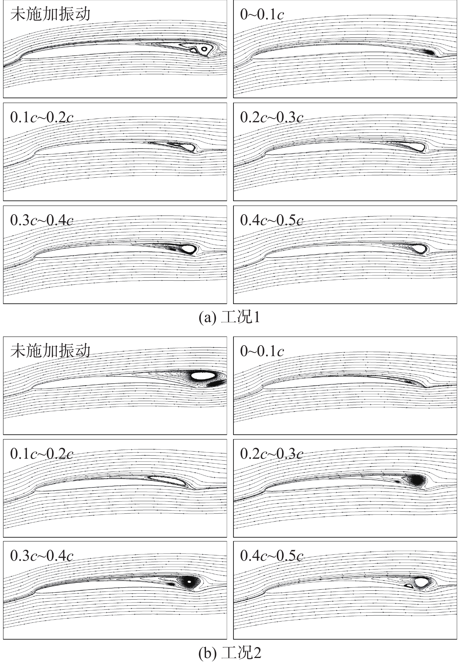 火星的稀薄大气环境迫使无人机在亚临界雷诺数范围工作,低雷诺数层流分离问题给无人机气动性能带来极其不利的影响。同时,火星大气的声速较低,使无人机运行的马赫数更高,压缩效应增强并可能产生激波。为研究火星环境下翼型局部振动的流动控制作用,采用基于动网格的数值方法对非定常流场进行模拟。选取NACA5605低雷诺数薄翼型,雷诺数为1.5×104,马赫数为0.43和0.63。时均流场和时均气动力系数结果显示:翼型局部振动能够明显减少时均分离区的大小,起到增升减阻的作用。非定常流场表明流动控制机理在于振动产生的涡流运动抑制了翼型尾缘附近的层流分离。研究了不同振幅、频率和振动位置下的流动控制效果。最佳参数下,马赫数为0.43时升阻比最多提高24.7%,马赫数为0.63时升阻比最多提高52%。