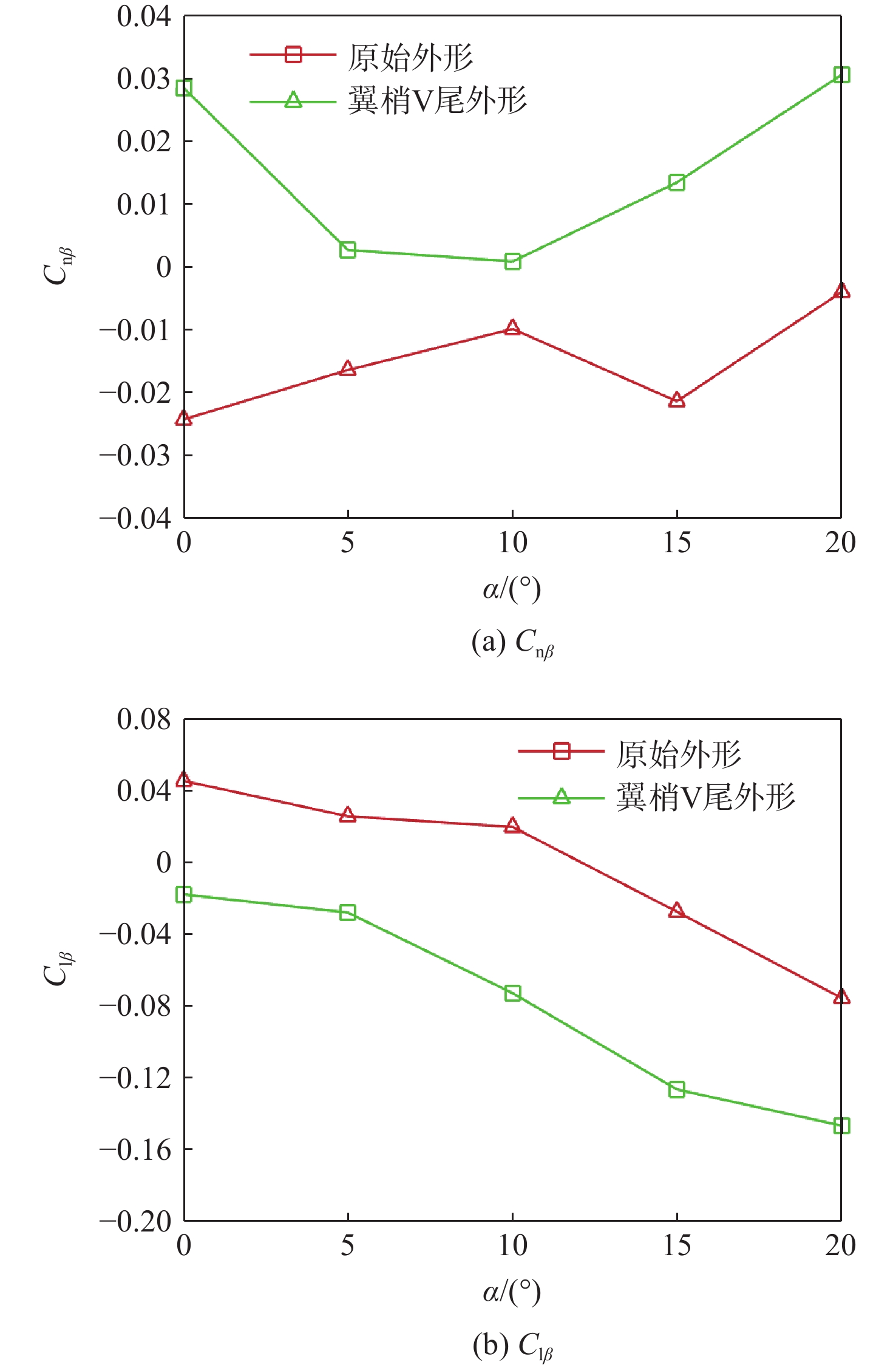 考虑高超声速飞行器装填、防热及操稳等多约束条件下的实用化设计需求,提出一种新型下反式高升阻比滑翔飞行器气动布局。借鉴乘波体飞行器的高升力设计方法及动量增升原理,该新型飞行器采用下反式后掠翼构型,上表面为光滑倒圆“Λ”形设计,下表面为内凹的装填空间,为尽可能避免长时间超远距离高超声速飞行带来的防热负担,采用后缘体襟翼及体侧扩张方向舵面设计。采用数值计算方法对所提布局思路进行验证分析,计算结果表明:在飞行高度为40 km,Ma=10的条件下升阻比可以达到4.48左右,在一定迎角范围内均具备很高的气动效率,验证了所提布局的有效性。同时重点针对所提布局共性的横航向稳定性问题基于数值模拟方法探讨了3种不同优化改进方案的效果及可行性,并采用风洞试验对两侧翼梢V尾的控制方案进行横航向稳定性控制效果的试验验证,结果表明:采用两侧翼梢V尾的控制方案是实现横航向稳定性控制的较优方案。