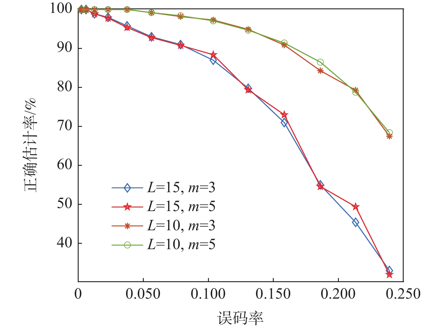 针对低信噪比下扰码初态正确估计率低的问题,提出一种基于求解含错方程的扰码初态估计算法。根据初态递推关系,利用接收的软判决序列建立含错方程,将初态估计问题转化为含错方程组的求解;采用平均校验符合度来衡量含错方程组成立的可能性大小,通过遍历初态集合完成初态估计;通过分段寻优求解的方法来确定校验方程,该方法极大降低了高阶数下需要遍历的初态数。实验结果表明:所提算法在信噪比为0 dB的情况下,扰码初态正确估计率能达90%以上,相比于传统的卷积码快速相关攻击算法约有1~2 dB的性能提升。