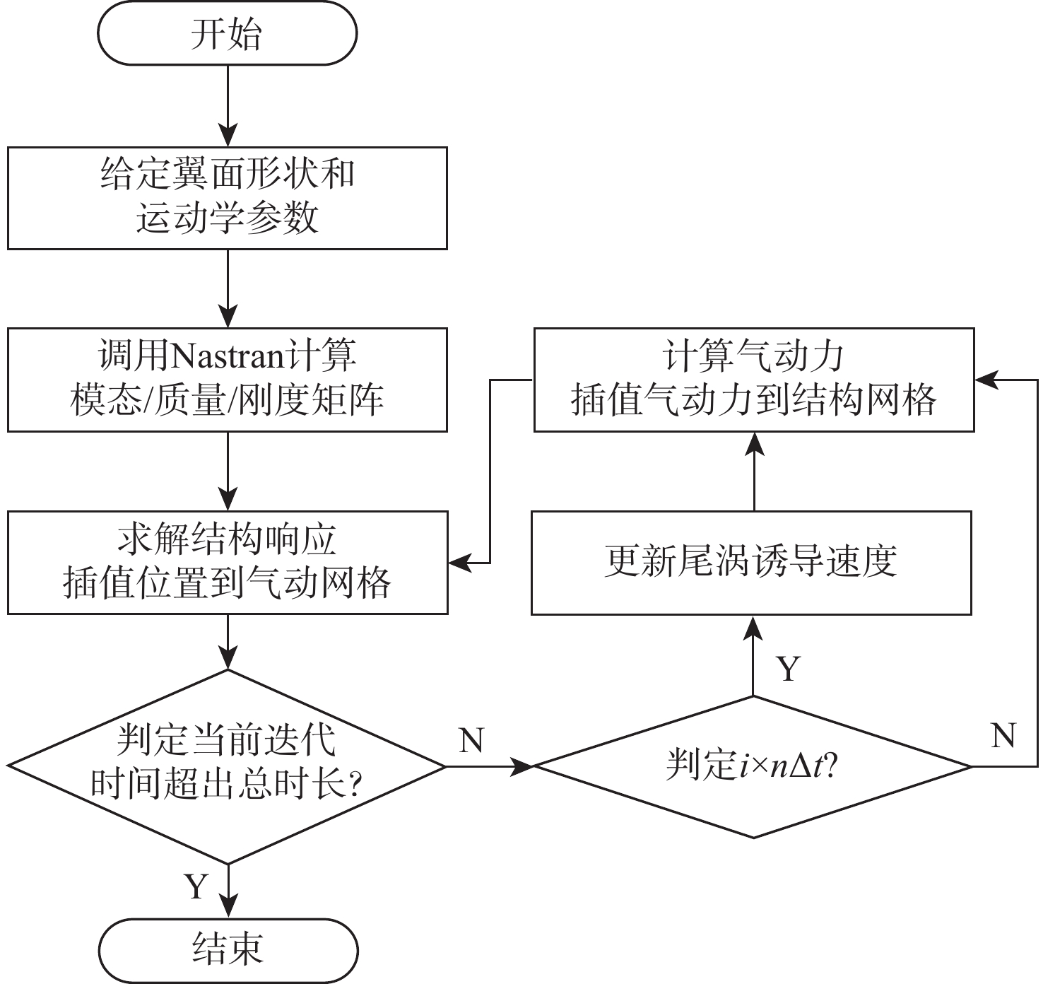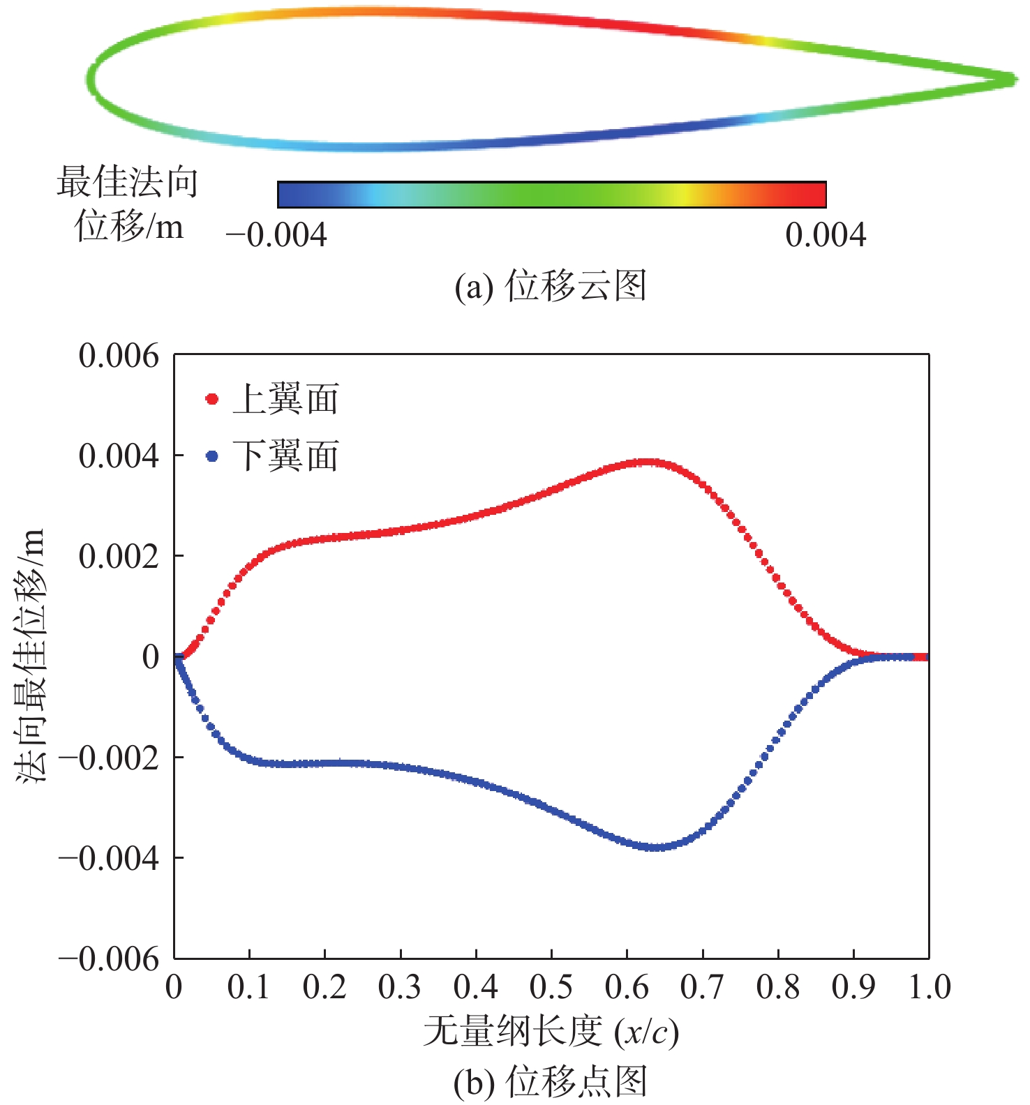 扑翼机具备仿鸟类的外形,能够隐蔽执行侦查监视任务,合理设计翼面形状和运动过程能够提升扑翼飞行气动效应。当前针对扑翼翼面设计问题,缺乏考虑流固耦合效应的优化设计研究,还未在设计阶段考虑改变柔性翼面形状对扑翼气动特性的影响,且现有研究只涉及对翼面形状或扑翼运动的单因素分析讨论,缺乏综合2种设计因素的优化设计。针对定速前飞的柔性扑翼翼面进行气动特性优化设计,采用Newmark-β方法求解结构响应,并与现成软件求解器的计算结果进行对比,验证结构动力学计算方法的准确性,用非定常涡格法(UVLM)计算扑翼气动力,搭建了高效的流固耦合计算框架。由于扑翼复杂设计空间具有多个局部最优点,采用与并行计算结合的细分矩形(DIRECT)全局优化算法,提高计算效率,对柔性扑翼翼面的形状和运动参数进行迭代优化,确定最大化推进效率的设计参数,并与刚性模型优化结果进行对比。结果表明:柔性扑翼翼面形状和运动优化设计能够获得更高的推进效率,与只采用形状优化相比最优推进效率提高了5.6%,比刚性模型优化结果提高了27.0%。