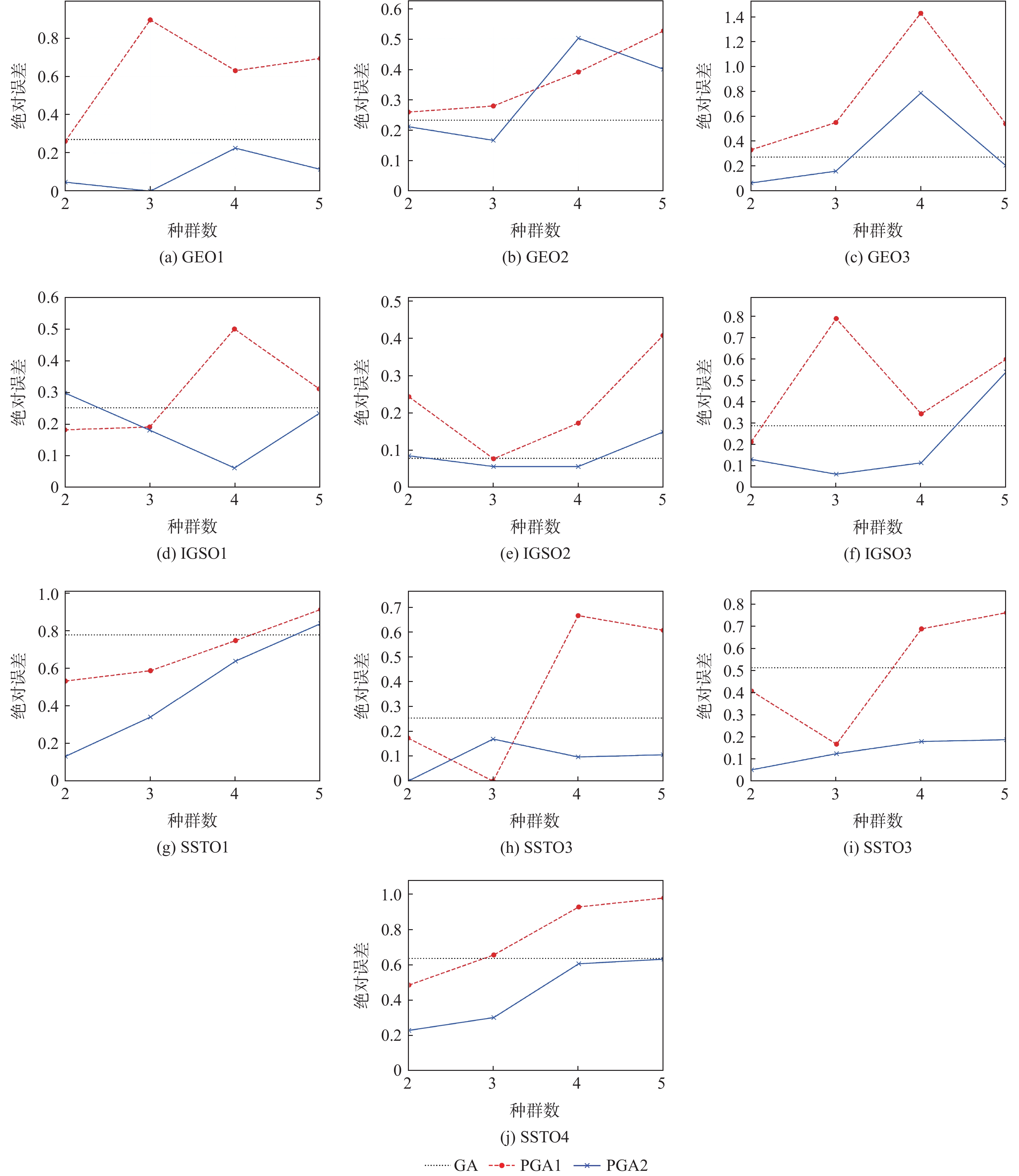 高轨航天器自主导航能力在北斗三号卫星导航系统建成后得到了增强,但是也带来了部分时刻可见星数量冗余的问题。为降低运算量以保证服务的实时性,提出一种利用多种群并行遗传算法 (PGA) 进行快速选择当前最优可见星组合的方法。该方法将加权精度因子 (WDOP) 作为适应度评判标准,利用粗粒度式并行划分成的多个子种群进行搜索加速,并通过变异因子差异化设置与子种群间的信息交流来提高搜索能力。对多个典型高轨环境下7颗及以上选星任务的仿真测试表明,基于PGA的选星方法解相比遍历法所求最优解绝对误差平均值小于0.1,相对误差最大不超过1%。仿真结果表明,在典型高轨环境F1接收机利用四系统组合导航时,所提方法可以有效地快速、准确完成指定卫星数的选星任务。