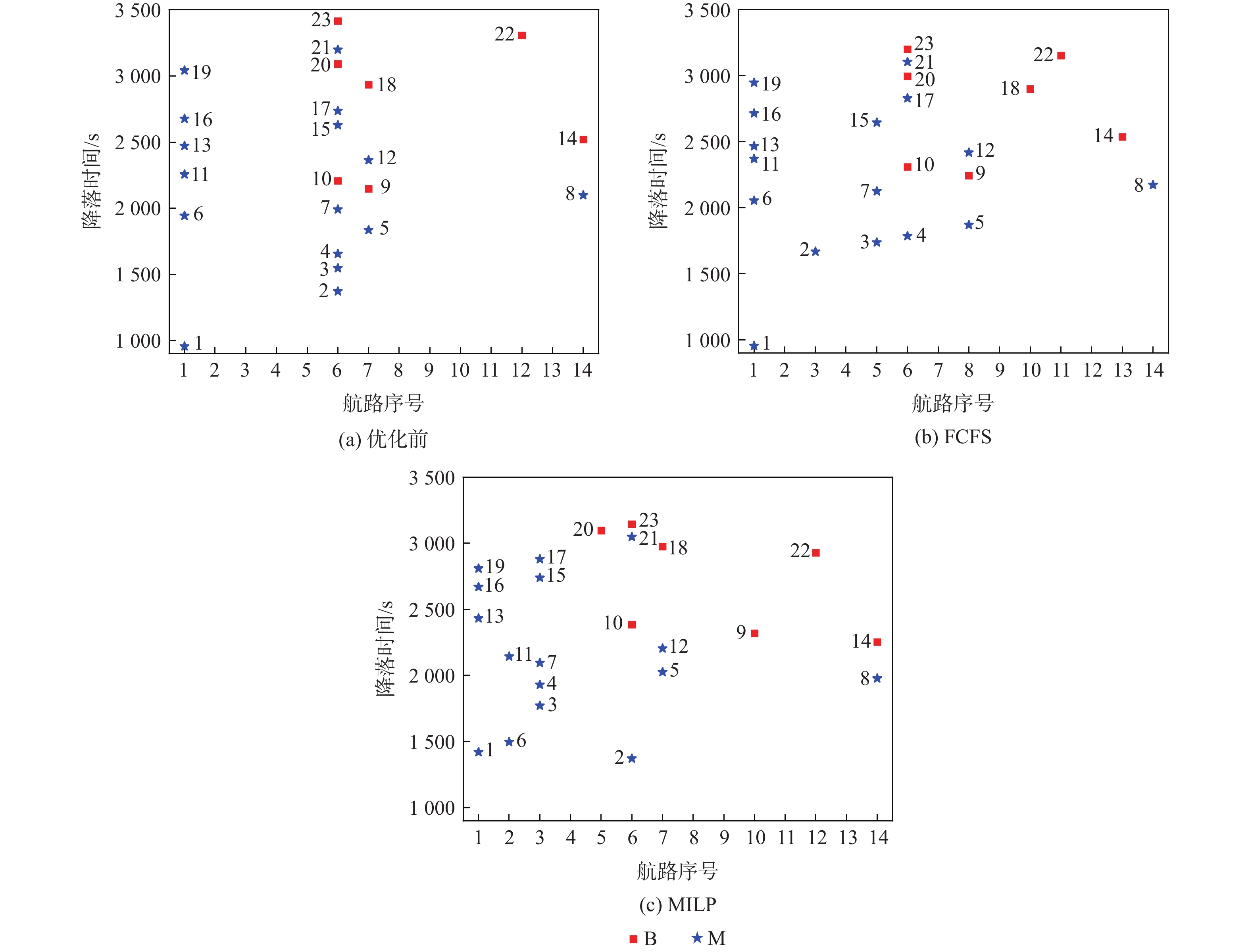 进场航班排序优化是提高进场航班着落效率、减少航班延误的有效方法。基于此,以最大化着落效率为目标,结合多跑道、多航路选择,考虑实际航路点限制,提出了多路径多跑道一体化进场航班排序优化混合整数规划模型。为解决大规模航班排序计算的实时性问题,提出了多航路点滚动时域控制算法。以广州白云国际机场终端区为实例进行验证,采用实际进场航班数据开展计算实验,在尾流安全间隔上,采用RECAT-CN运行标准,计算结果表明:小规模航班架次时(23架),所提模型最大降落时间比先到先服务方法提前55 s,比未优化时提前271 s;大规模航班架次时(104架),仅靠求解器在3600 s内未找到可行解,所提算法在128.65 s找到解。所提模型和算法有效,可应用于实际航班排序优化。