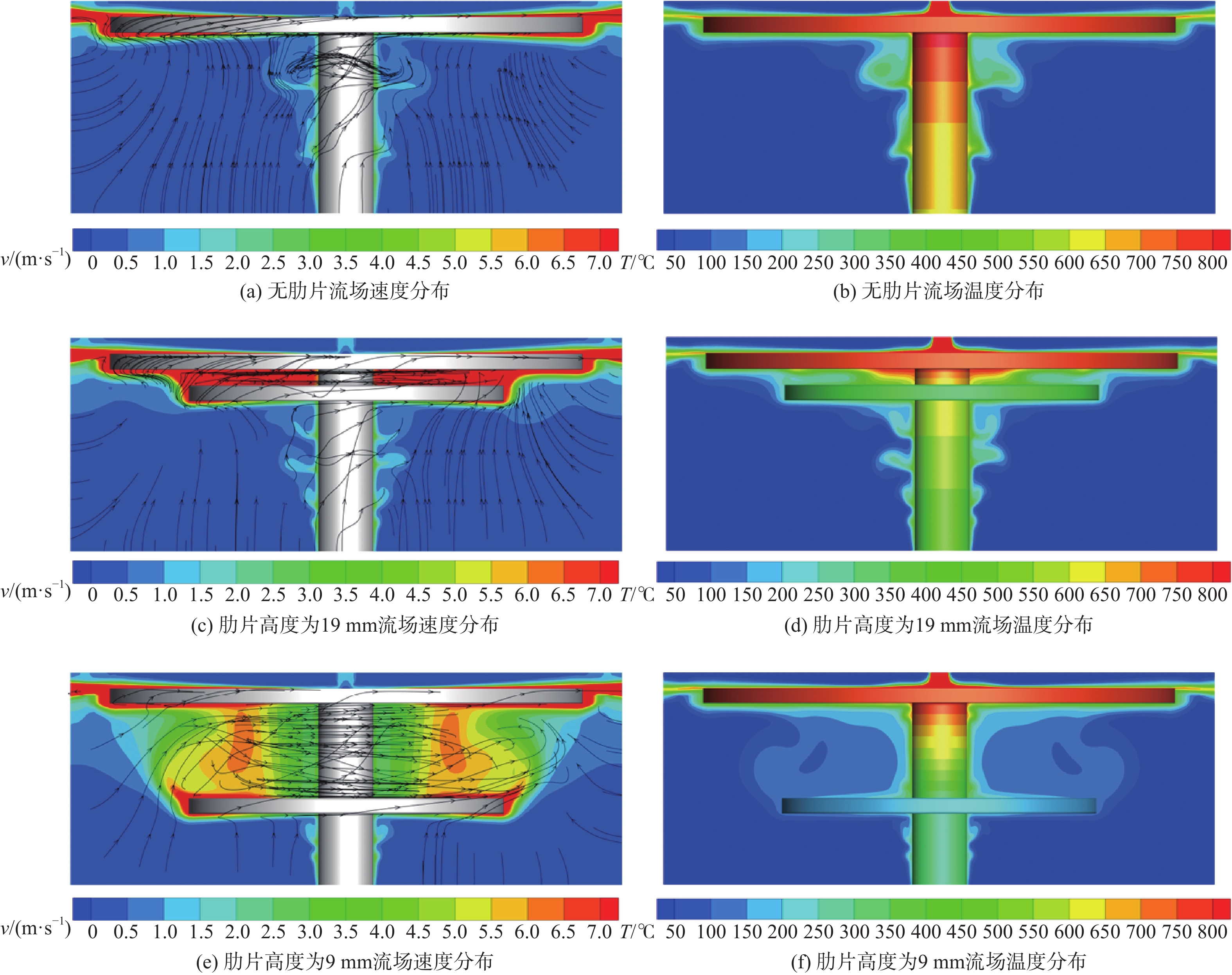 转盘离心雾化是一种制备球形金属粉末的重要方法,在高熔点金属粉末制备中,需要对转盘结构本身和下端的驱动电机进行热防护。采用数值模拟的方法,研究熔融铝液的转盘离心雾化流场模型的耦合传热问题,给出不同材料、不同转盘结构条件下的转盘温度场分布。为提高冷却效率,发展带有肋片的新型转盘热防护结构,分析肋片结构的散热机理,对比不同肋片位置、肋片厚度和肋片直径的热防护效果。研究结果表明:大热容和低导热系数的金属材料转盘的底端温度更低;肋片和转盘之间形成的环形氮气流场是提高转轴散热能力的主要原因;肋片位置越低,直径越大,厚度越厚,转轴底端温度越低,冷却效果越好。