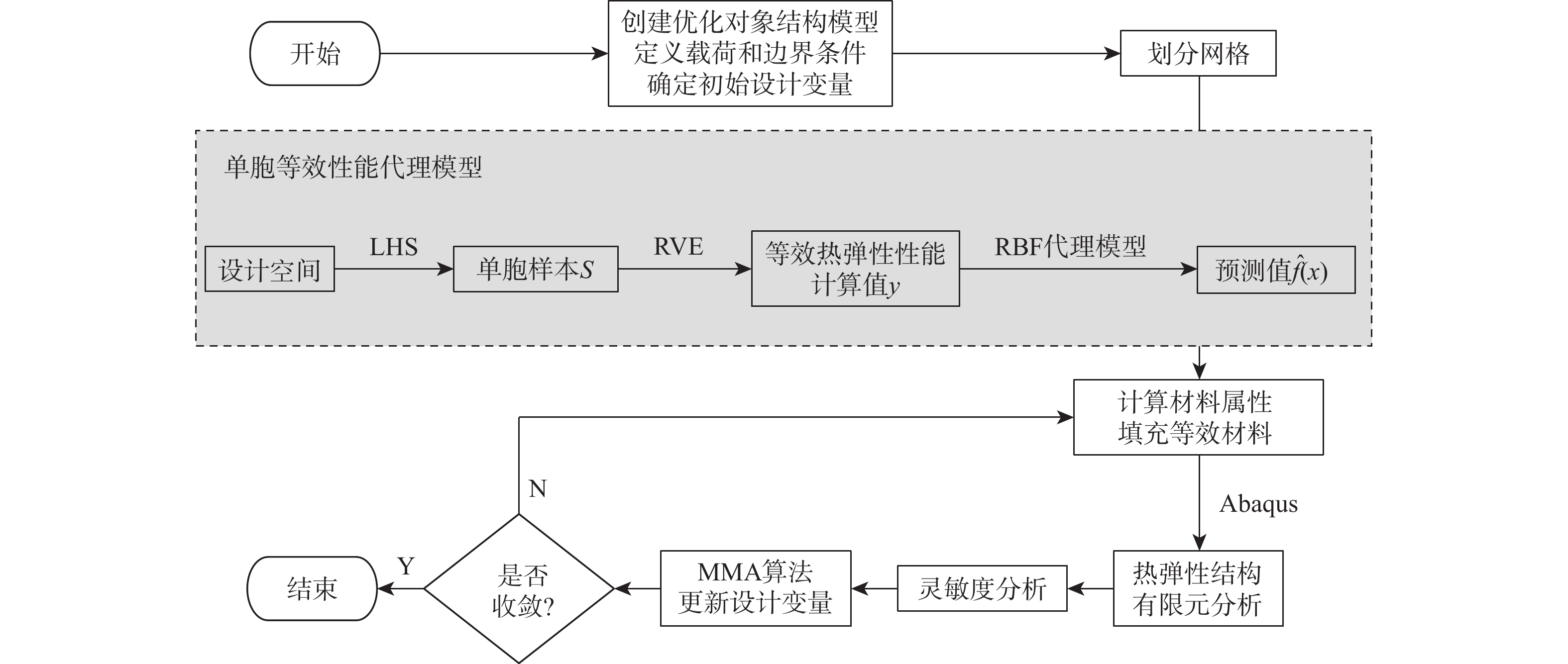 三维点阵材料是一种具有多尺度特性的新型轻质多功能材料,其有千变万化的微结构和高孔隙率,通过设计其细观尺度特征可以获得优良的宏观性能。为了发挥材料与结构的最大设计潜力,提出一种热弹性点阵结构优化方法。在材料细观研究尺度上,实现了三维点阵材料等效热弹性性能预测,利用周期性边界条件下的代表体元法进行数值求解,利用径向基函数代理模型构建细观结构和宏观材料性能的数学关系,并进行了预测误差验证,证明了所提方法具有良好的精确度。在结构宏观研究尺度上,建立了以等效材料填充的结构优化模型,考虑了热力载荷作用,以单胞等效性能代理模型作为材料插值模型,提出最小应变能热弹性点阵结构优化数学模型。在典型三维算例中得到了细观结构变密度分布的优化结果,结构热刚度在一定体积约束下显著提高,证明了所提方法的有效性。