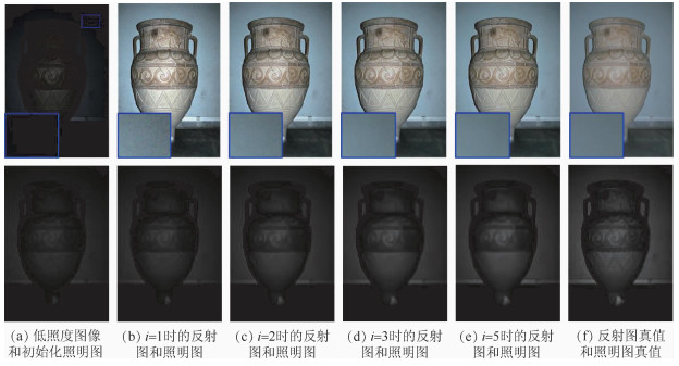 为增强低照度图像和抑制噪声,提出了一种通过学习收缩场(SF)改进Retinex分解的图像增强方法。首先,构造新的目标函数,在正则项中引入2组不同的高阶滤波器分别约束未知的反射图和照明图。高阶滤波器可以学习到多种激活模式,有利于在恢复反射图的同时抑制噪声污染。然后,在优化目标函数时通过求解收缩场更新隐变量,参数化的压缩函数可以自适应地调整相应滤波器在反射图和照明图上的响应。最后,在每个级联内更新照明图之前,嵌入一个辅助的收缩场,以抑制噪声和不良伪影的传播,从而更精确地估计照明图。实验结果表明,所提方法取得的峰值信噪比(PSNR)和结构相似性(SSIM)均高于当前最新的低照度图像增强方法。