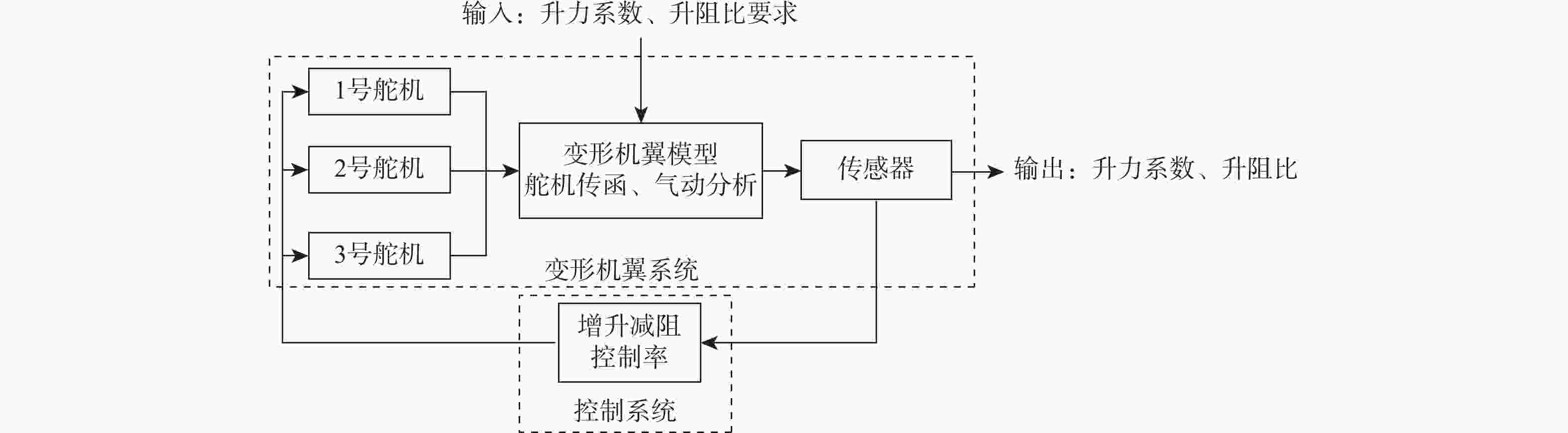 针对固定翼飞行器无法在复杂多变飞行环境中始终处于最优气动构型的缺陷,提出能够根据飞行环境参数自适应变形的机翼设计理念。设计了一款通过刚性翼盒偏转实现变形功能的机翼,通过面元法耦合XFOIL黏性修正器进行气动模型仿真计算,对该机翼的气动特性进行分析;并在此基础上设计变形机翼舵机风洞试验平台,搭建测试采集系统,对航模舵机驱动变形的气动伺服系统进行低速风洞试验,通过子空间辨识法获得了气动伺服系统的数学模型,并通过比例积分微分(PID)控制结合Smith预估控制算法的方式进行舵机补偿控制。最后根据得到的变形机翼气动数据和舵机频响特性,以优化气动性能为目标设计了一款基于舵机补偿的自适应变形机翼反馈控制系统,可以实现在复杂环境中的舵机补偿和自适应变形,对后续变形机翼的设计提供了参考。