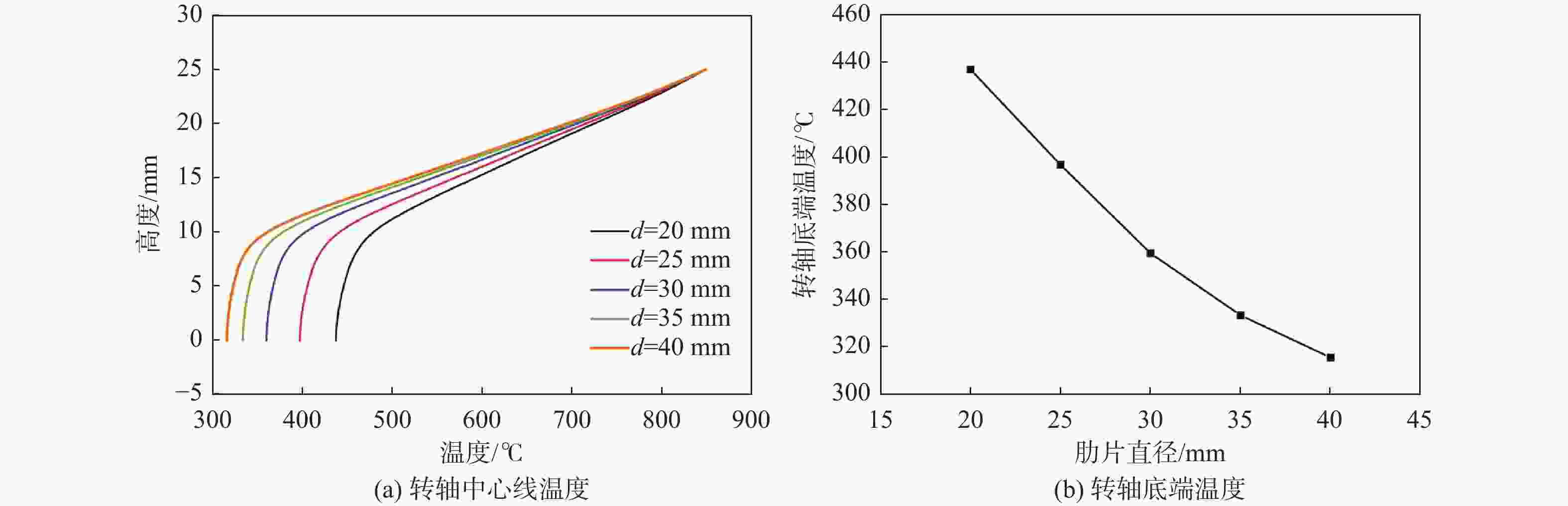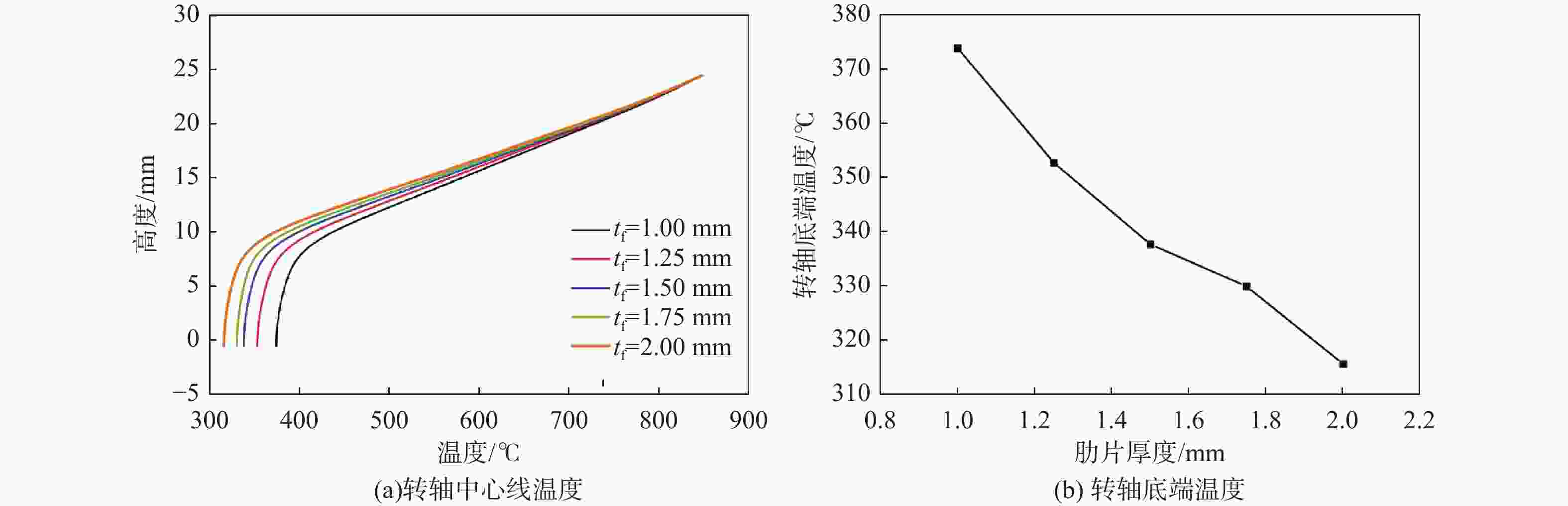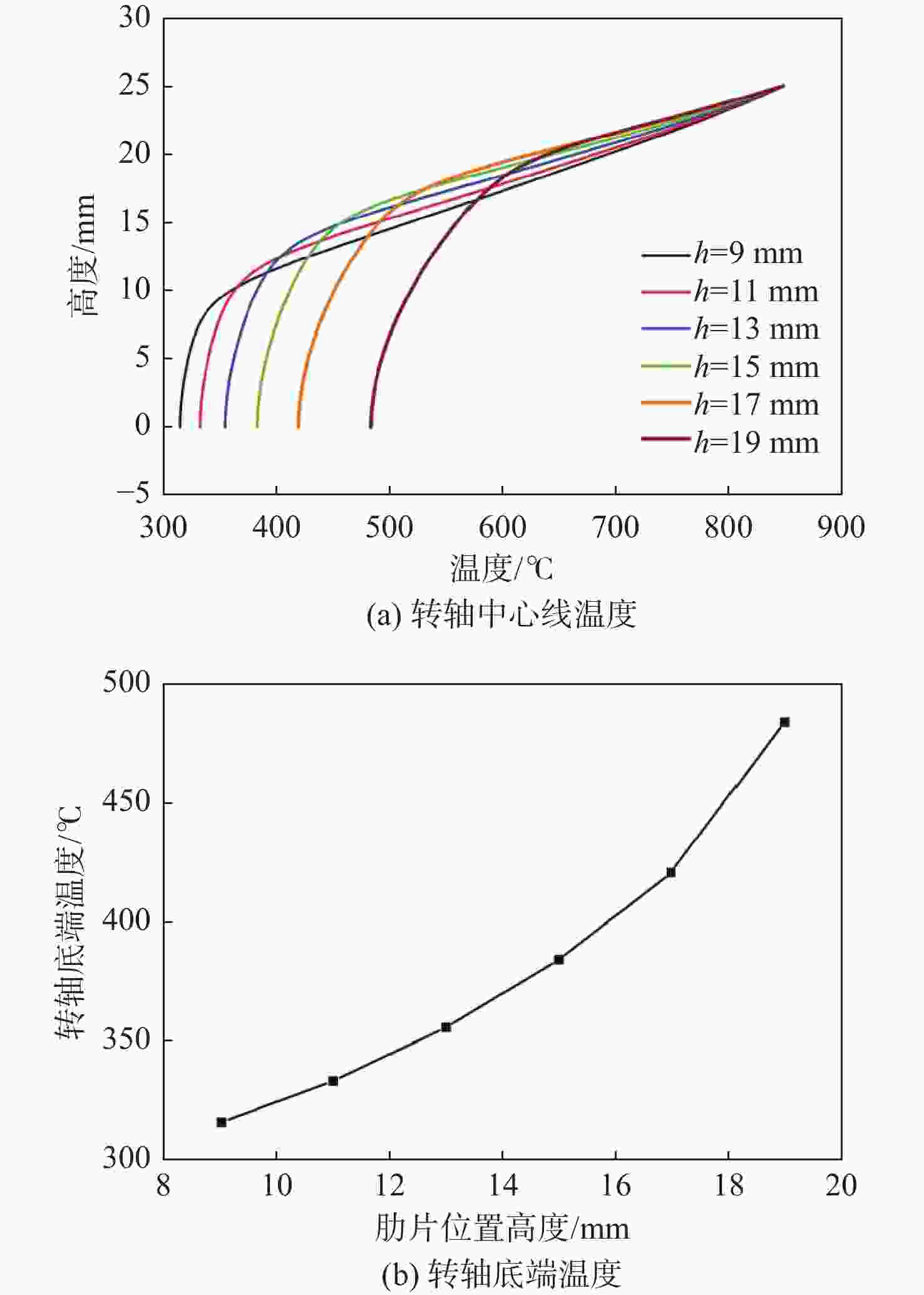 水平 肋片位置高度/mm 肋片厚度/mm 肋片直径/mm 1 9 1 20 2 14 1.5 30 3 19 2 40 表 6 9种肋片参数搭配下的转轴底端温度