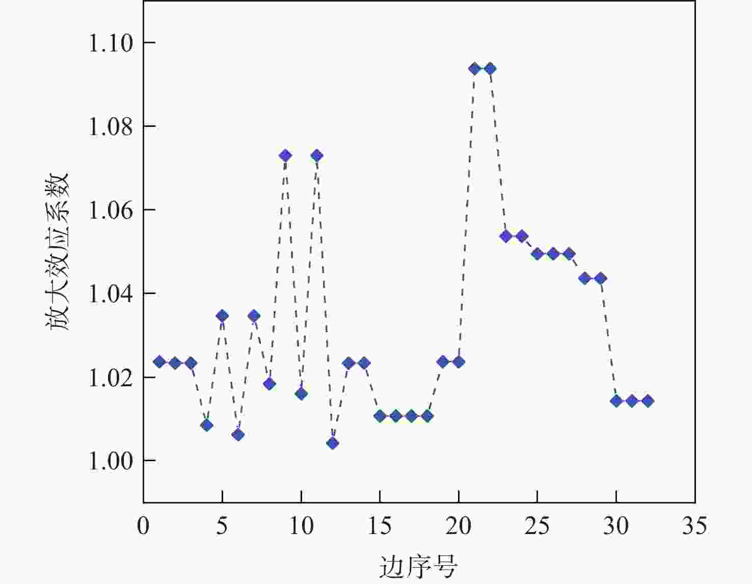pi si pi si 1 0.0159 13 0.0159 2 0.0317 14 0.0159 3 0.0317 15 0.0476 4 0.0476 16 0.0476 5 0.1111 17 0.1428 6 0.1111 18 0.0317 7 0.0317 19 0.0317 8 0.0159 20 0.0317 9 0.0159 21 0.0317 10 0.0317 22 0.0317 11 0.0317 23 0.0476 12 0.0476 表 4 边传播特性