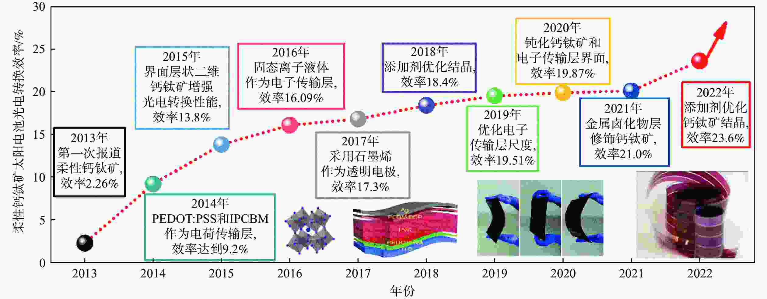 [1] HWANG I, UM H D, KIM B S, et al. Flexible crystalline silicon radial junction photovoltaics with vertically aligned tapered microwires[J]. Energy & Environmental Science, 2018, 11(3): 641-647. [2] RAMANUJAM J, SINGH U P. Copper indium gallium selenide based solar cells: a review[J]. Energy & Environmental Science, 2017, 10(6): 1306-1319. [3] SUN Y N, MENG L X, WAN X J, et al. Flexible high-performance and solution-processed organic photovoltaics with robust mechanical stability[J]. Advanced Functional Materials, 2021, 31(16): 2010000. doi: 10.1002/adfm.202010000 [4] YOO J J, SEO G, CHUA M R, et al. Efficient perovskite solar cells via improved carrier management[J]. Nature, 2021, 590(7847): 587-593. doi: 10.1038/s41586-021-03285-w [5] MENG X C, CAI Z R, ZHANG Y Y, et al. Bio-inspired vertebral design for scalable and flexible perovskite solar cells[J]. Nature Communications, 2020, 11(1): 3016. doi: 10.1038/s41467-020-16831-3 [6] KUMAR M H, YANTARA N, DHARANI S, et al. Flexible, low-temperature, solution processed ZnO-based perovskite solid state solar cells[J]. Chemical Communications, 2013, 49(94): 11089-11091. doi: 10.1039/c3cc46534a [7] YOU J B, HONG Z R, YANG Y M, et al. Low-temperature solution-processed perovskite solar cells with high efficiency and flexibility[J]. ACS Nano, 2014, 8(2): 1674-1680. doi: 10.1021/nn406020d [8] YAO K, WANG X F, XU Y X, et al. A general fabrication procedure for efficient and stable planar perovskite solar cells: morphological and interfacial control by in-situ-generated layered perovskite[J]. Nano Energy, 2015, 18: 165-175. doi: 10.1016/j.nanoen.2015.10.010 [9] YANG D, YANG R X, REN X D, et al. Hysteresis-suppressed high-efficiency flexible perovskite solar cells using solid-state ionic-liquids for effective electron transport[J]. Advanced Materials, 2016, 28(26): 5206-5213. doi: 10.1002/adma.201600446 [10] YOON J, SUNG H, LEE G, et al. Superflexible, high-efficiency perovskite solar cells utilizing graphene electrodes: towards future foldable power sources[J]. Energy & Environmental Science, 2017, 10(1): 337-345. [11] FENG J S, ZHU X J, YANG Z, et al. Record efficiency stable flexible perovskite solar cell using effective additive assistant strategy[J]. Advanced Materials, 2018, 30(35): 1801418. doi: 10.1002/adma.201801418 [12] HUANG K Q, PENG Y Y, GAO Y X, et al. High-performance flexible perovskite solar cells via precise control of electron transport layer[J]. Advanced Energy Materials, 2019, 9(44): 1901419. doi: 10.1002/aenm.201901419 [13] DONG Q S, CHEN M, LIU Y H, et al. Flexible perovskite solar cells with simultaneously improved efficiency, operational stability, and mechanical reliability[J]. Joule, 2021, 5(6): 1587-1601. doi: 10.1016/j.joule.2021.04.014 [14] GAO D P, LI B, LI Z, et al. Highly efficient flexible perovskite solar cells through pentylammonium acetate modification with certified efficiency of 23.35%[J]. Advanced Materials, 2023, 35(3): 2206387. doi: 10.1002/adma.202206387 [15] KIM Y, LEE K Y, HWANG S K, et al. Piezoelectrics: layer-by-layer controlled perovskite nanocomposite thin films for piezoelectric nanogenerators[J]. Advanced Functional Materials, 2014, 24(40): 6246. doi: 10.1002/adfm.201470262 [16] RICHARDS B S. Enhancing the performance of silicon solar cells via the application of passive luminescence conversion layers[J]. Solar Energy Materials and Solar Cells, 2006, 90(15): 2329-2337. doi: 10.1016/j.solmat.2006.03.035 [17] LIN Y Z, SHAO Y C, DAI J, et al. Metallic surface doping of metal halide perovskites[J]. Nature Communications, 2021, 12: 7. doi: 10.1038/s41467-020-20110-6 [18] SALIBA M, MATSUI T, DOMANSKI K, et al. Incorporation of rubidium cations into perovskite solar cells improves photovoltaic performance[J]. Science, 2016, 354(6309): 206-209. doi: 10.1126/science.aah5557 [19] HU X T, MENG X C, ZHANG L, et al. A mechanically robust conducting polymer network electrode for efficient flexible perovskite solar cells[J]. Joule, 2019, 3(9): 2205-2218. doi: 10.1016/j.joule.2019.06.011 [20] PAIK M J, YOO J W, PARK J, et al. SnO2-TiO2 hybrid electron transport layer for efficient and flexible perovskite solar cells[J]. ACS Energy Letters, 2022, 7(5): 1864-1870. doi: 10.1021/acsenergylett.2c00637 [21] HUANG Z Q, HU X T, LIU C, et al. Nucleation and crystallization control via polyurethane to enhance the bendability of perovskite solar cells with excellent device performance[J]. Advanced Functional Materials, 2017, 27(41): 1703061. doi: 10.1002/adfm.201703061 [22] MENG X C, XING Z, HU X T, et al. Stretchable perovskite solar cells with recoverable performance[J]. Angewandte Chemie International Edition, 2020, 59(38): 16602-16608. doi: 10.1002/anie.202003813 [23] DAI X Z, DENG Y H, VAN BRACKLE C H, et al. Scalable fabrication of efficient perovskite solar modules on flexible glass substrates[J]. Advanced Energy Materials, 2020, 10(1): 1903108. doi: 10.1002/aenm.201903108 [24] XUE T Y, CHEN D, SU M, et al. Macromonomer crosslinking polymerized scaffolds for mechanically robust and flexible perovskite solar cells[J]. Journal of Materials Chemistry A, 2022, 10(36): 18762-18772. doi: 10.1039/D2TA04502H [25] DUAN X P, LI X, TAN L C, et al. Controlling crystal growth via an autonomously longitudinal scaffold for planar perovskite solar cells[J]. Advanced Materials, 2020, 32(26): 2000617. doi: 10.1002/adma.202000617 [26] XIONG H, DELUCA G, RUI Y C, et al. Modifying perovskite films with polyvinylpyrrolidone for ambient-air-stable highly bendable solar cells[J]. ACS Applied Materials & Interfaces, 2018, 10(41): 35385-35394. [27] YANG L K, XIONG Q, LI Y B, et al. Artemisinin-passivated mixed-cation perovskite films for durable flexible perovskite solar cells with over 21% efficiency[J]. Journal of Materials Chemistry A, 2021, 9(3): 1574-1582.YANG L K, XIONG Q, LI Y B, et al. Artemisinin-passivated mixed-cation perovskite films for durable flexible perovskite solar cells with over 21% efficiency[J]. Journal of Materials Chem