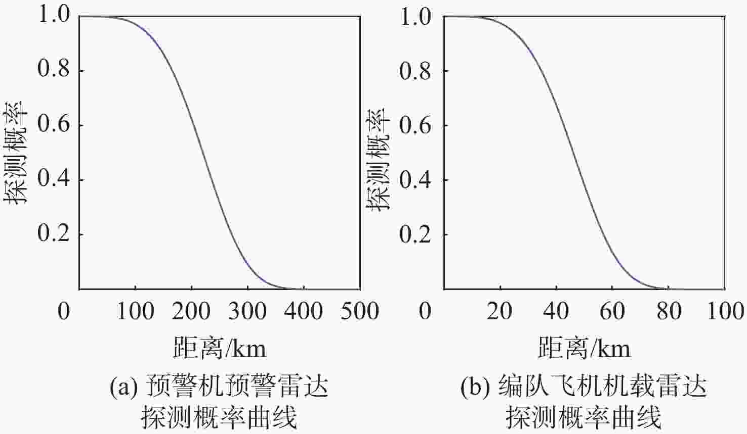 机型 发射功率/W 发射增益/dB 接收机带宽/Hz 接收增益/dB 信号波长/m 脉压比 脉冲累积数 环境温度/K 噪声系数/dB 损耗/dB 预警机 2.0×102 40 5.0×106 40 0.3 1 30 293 2 6 歼击机 1.0×102 35 5.0×106 35 0.03 1 30 293 3 8 表 2 飞机性能参数