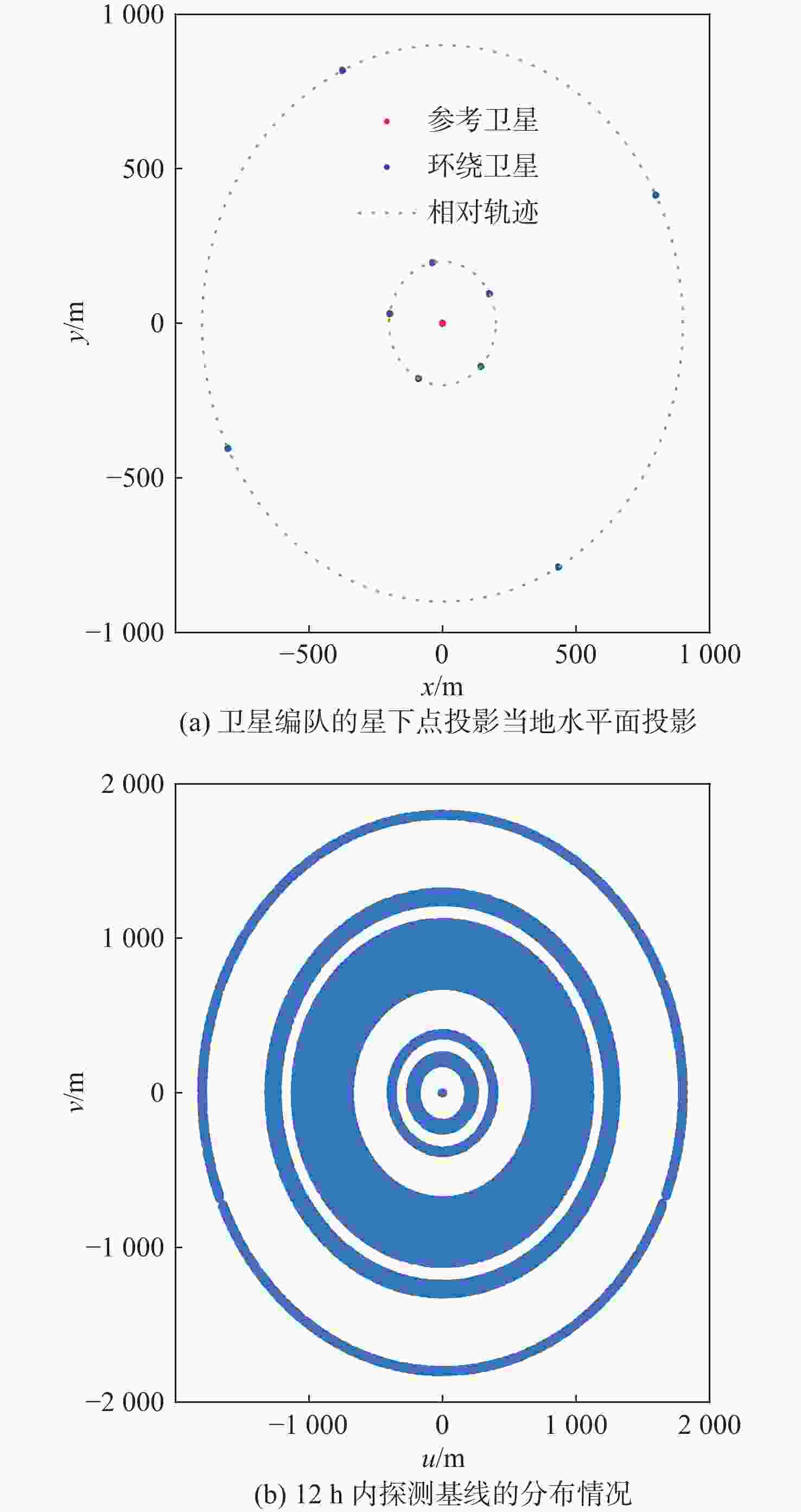 表 1 各卫星的轨道参数 Table 1. Orbital elements of each satellite 卫星相对轨道要素 半长轴/km 偏心率/10−6 轨道倾角/(°) 近地点幅角/(°) 升交点赤经/(°) 平近点角/(°) 参考卫星 42164 0 0 0 0 0 环绕卫星1 42164 $2.372 $ $2.718 \times {10^{ - 4}}$ 90.000 81.011 171.011 环绕卫星2 42164 $2.372 $ $2.718 \times {10^{ - 4}}$ 90.000 225.814 315.814 环绕卫星3 42164 $2.372 $ $2.718 \times {10^{ - 4}}$ 90.000 −61.375 28.625 环绕卫星4 42164 $2.372 $ $2.718 \times {10^{ - 4}}$ 90.000 10.812 100.812 环绕卫星5 42164 $2.372 $ $2.718 \times {10^{ - 4}}$ 90.000 153.198 243.198 环绕卫星6 42164 $2.372 $ $2.718 \times {10^{ - 4}}$ 90.000 −62.550 27.450 环绕卫星7 42164 $2.372 $ $2.718 \times {10^{ - 4}}$ 90.000 116.695 206.695 环绕卫星8 42164 $2.372 $ $2.718 \times {10^{ - 4}}$ 90.000 208.878 298.878 环绕卫星9 42164 $2.372 $ $2.718 \times {10^{ - 4}}$ 90.000 24.592 114.592