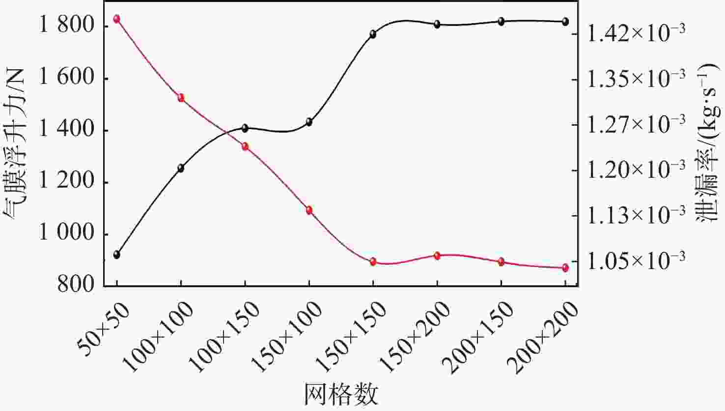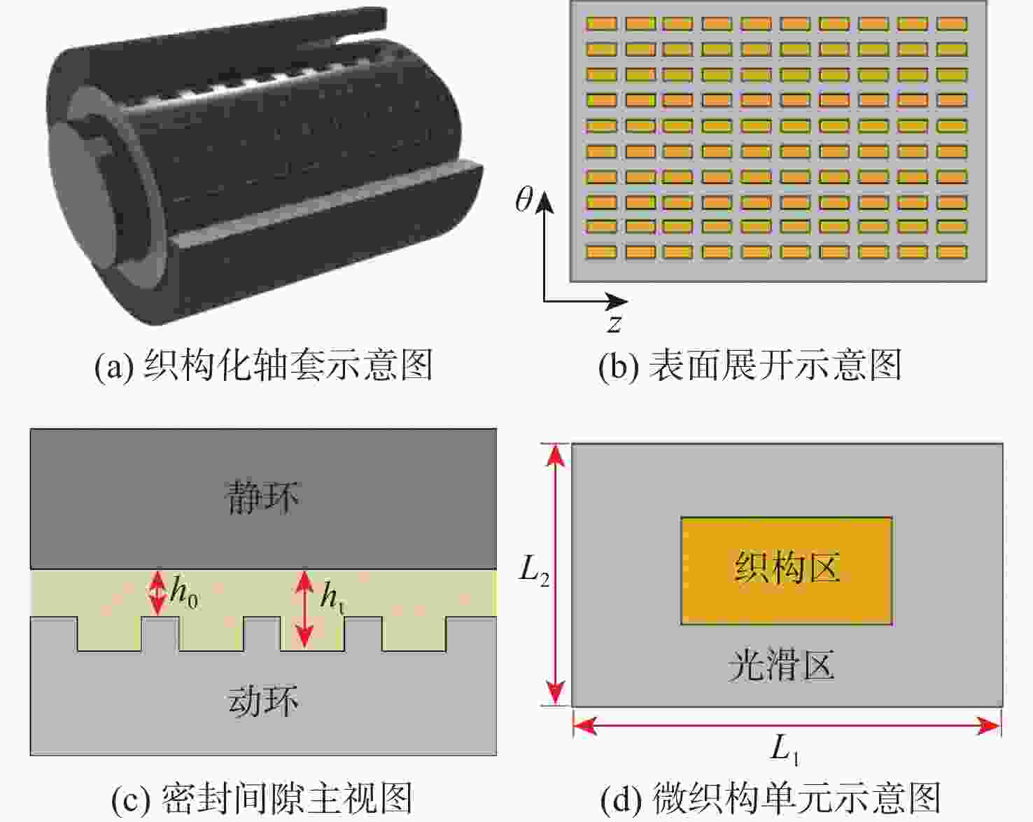 参数 数值 轴套外半径/mm 25 平均气膜厚度/μm 5 介质气体黏度/(Pa·s) 1.8×10−5 偏心率 0.7 轴套长度/mm 52 出口压力/MPa 0.101325 入口压力/MPa 0.7 转速/(r·min−1) 16000 介质气体密度/(kg·m−3) 1.1452 轴向织构间距/mm 3.36 周向织构间距/mm 2.9 织构长度/mm 12 织构宽度/mm 2 织构深度/μm 2 轴向织构个数 10 周向织构个数 10 -