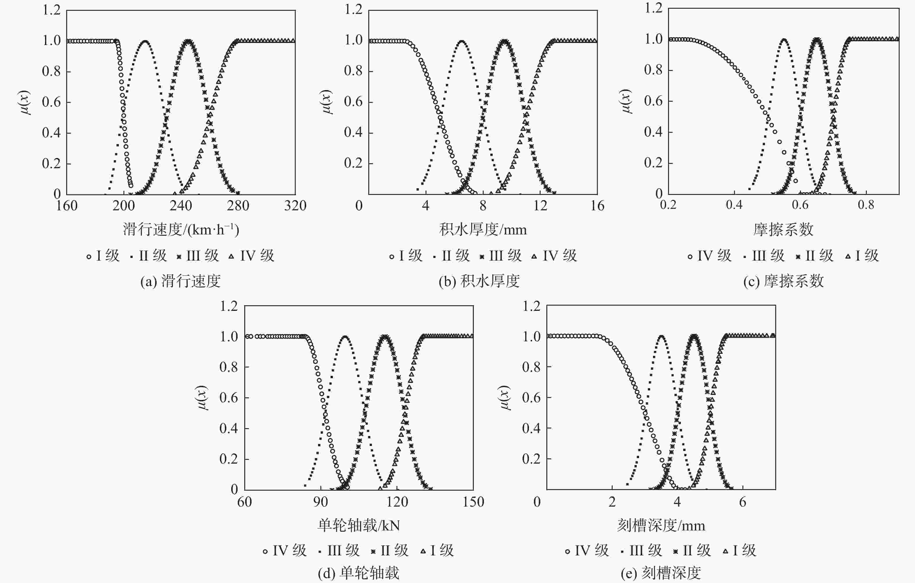 mmⅠ ≤200 ≤5 >0.7 >123.1 >5 Ⅱ ≤230 ≤8 ≤0.7 ≤123.1 ≤5 Ⅲ ≤260 ≤11 ≤0.6 ≤107.3 ≤4 Ⅳ >260 >11 ≤0.6 ≤91.7 ≤3 表 2 滑水事故征候跑道运行参数组合