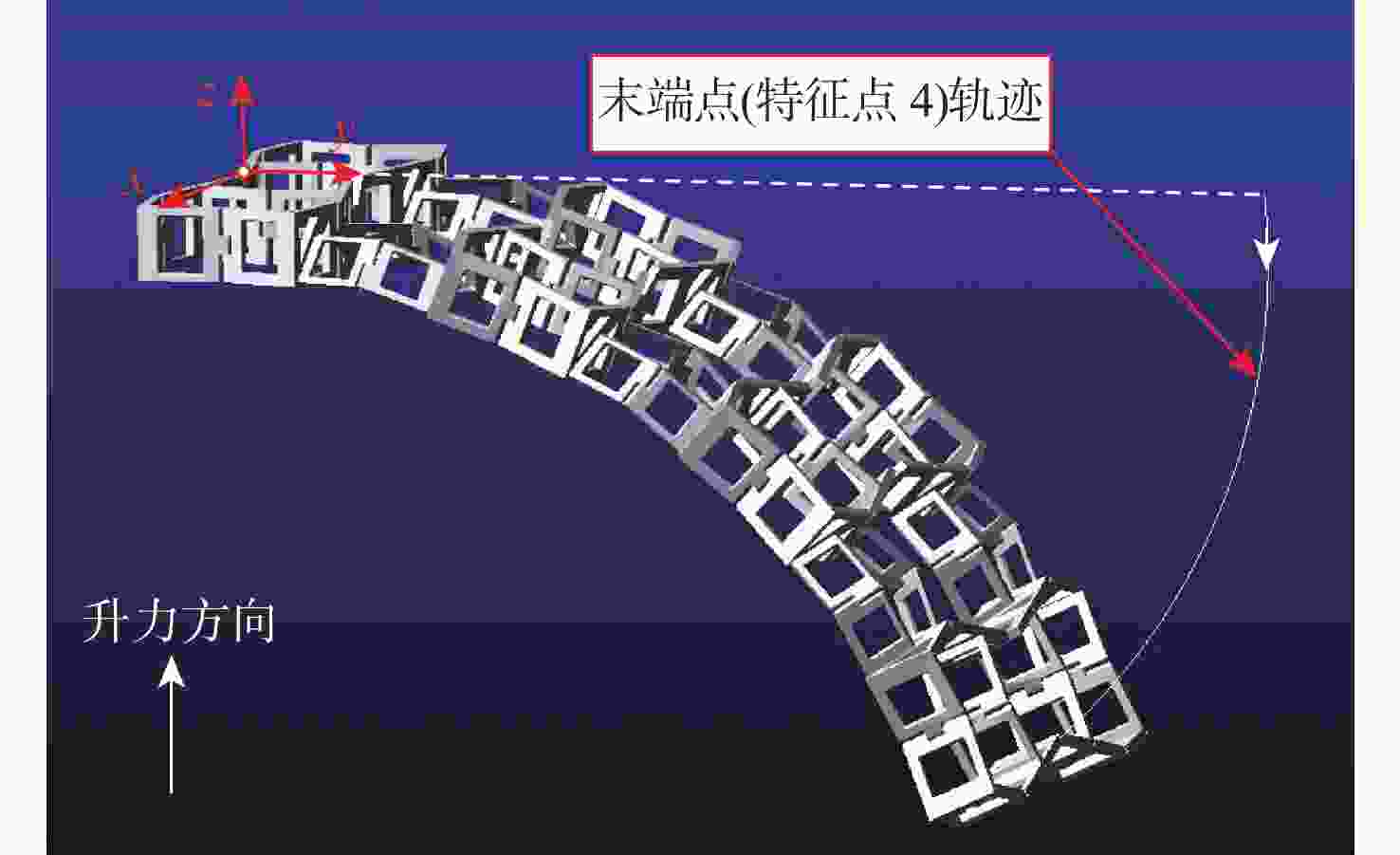 变体飞行器是一种通过变形机构改变自身气动外形,以适应多种飞行环境与任务要求的新概念飞行器,在航空航天、军事侦察等领域具有重要的应用价值,是未来飞行器研究的前沿与热点。针对变体飞行器广空域、宽速域等新的发展需求,基于等边Bennett机构提出一种具有空间多回路闭链特征的展向弯曲变形翼机构。研究等边Bennett机构的几何特性,提出基于等边Bennett机构的多回路闭环变形翼机构设计方案;采用约束螺旋求解法对变形翼机构自由度进行求解,基于D-H坐标变换法建立运动学模型;建立机构三维模型及虚拟样机,并进行运动学仿真验证,制作样机并进行实验。研究结果表明:所提的变形翼机构仅需一个动力源即可驱动机构运动,结构简单、模块化率高;能够实现各零部件间的准确连接及预期的展向弯曲变形动作。研究成果为新型变体飞行器变形翼的基础研究及工程应用提供了借鉴与参考。