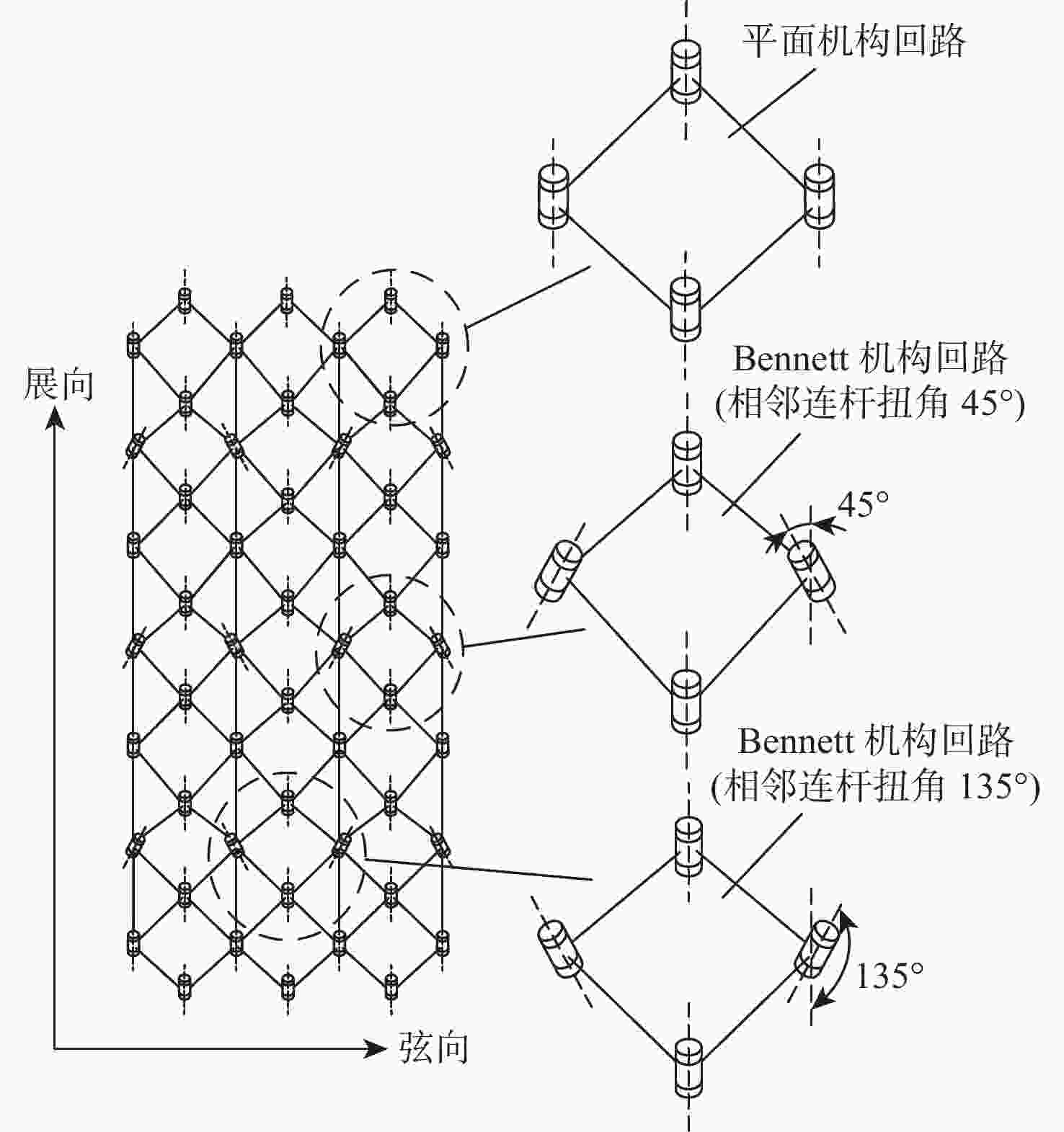 [1] 周文雅, 张宗宇, 王晓明, 等. 机翼中小尺度主动变形研究进展及关键技术[J]. 机械工程学报, 2021, 57(2): 121-138. doi: 10.3901/JME.2021.02.121ZHOU W Y, ZHANG Z Y, WANG X M, et al. Research progress and key techniques of active morphing wing at medium and small scales[J]. Journal of Mechanical Engineering, 2021, 57(2): 121-138(in Chinese). doi: 10.3901/JME.2021.02.121 [2] AJAJ R M, PARANCHEERIVILAKKATHIL M S, AMOOZGAR M, et al. Recent developments in the aeroelasticity of morphing aircraft[J]. Progress in Aerospace Sciences, 2021, 120: 100682. doi: 10.1016/j.paerosci.2020.100682 [3] CHU L L, LI Q, GU F, et al. Design, modeling, and control of morphing aircraft: a review[J]. Chinese Journal of Aeronautics, 2022, 35(5): 220-246. doi: 10.1016/j.cja.2021.09.013 [4] KAO J Y, CLARK D L, WHITE T, et al. Conceptual multidisciplinary design and optimization of morphing aircraft: AIAA-2019-0175[R]. Reston: AIAA, 2019. [5] GUO J B, ZHAO C J, SONG Z G. Discussion on research status and key technologies of morphing aircraft[C]//Proceedings of the International Conference on Mechatronics Technology and Aerospace Engineering. Bristol: IOP Publishing, 2021: 24-26. [6] 冉茂鹏, 王成才, 刘华华, 等. 变体飞行器控制技术发展现状与展望[J]. 航空学报, 2022, 43(10): 527449. doi: 10.7527/S1000-6893.2022.27449RAN M P, WANG C C, LIU H H, et al. Research status and future development of morphing aircraft control technology[J]. Acta Aeronautica et Astronautica Sinica, 2022, 43(10): 527449(in Chinese). doi: 10.7527/S1000-6893.2022.27449 [7] NEAL A D. Design, development, and analysis of a morphing aircraft model for wind tunnel experimentation[D]. Blacksburg: Virginia Polytechnic Institute, 2006. [8] FLANAGAN J, STRUTZENBERG R, MYERS R, et al. Development and flight testing of a morphing aircraft, the NextGen MFX-1: AIAA-2007-1707[R]. Reston: AIAA, 2007. [9] YOUNG T M, HIRST M. Innovation in aeronautics[M]. [S.l.]: Woodhead Publishing, 2012: 37-55. [10] MANZO J, GARCIA E. Demonstration of an in situ morphing hyperelliptical cambered span wing mechanism[J]. Smart Materials and Structures, 2010, 19(2): 025012. doi: 10.1088/0964-1726/19/2/025012 [11] LAZOS B S. Biologically inspired fixed-wing configuration studies[J]. Journal of Aircraft, 2005, 42(5): 1089-1098. doi: 10.2514/1.10496 [12] WANG Q, CHEN Y, TANG H. Mechanism design for aircraft morphing wing: AIAA-2012-1608[R]. Reston: AIAA, 2012. [13] GRANT D T, ABDULRAHIM M, LIND R. Flight dynamics of a morphing aircraft utilizing independent multiple-joint wing sweep[J]. International Journal of Micro Air Vehicles, 2010, 2(2): 91-106. doi: 10.1260/1756-8293.2.2.91 [14] MOOSAVIAN A, XI F F, HASHEMI S M. Design and motion control of fully variable morphing wings[J]. Journal of Aircraft, 2013, 50(4): 1189-1201. doi: 10.2514/1.C032127 [15] 陈钱, 白鹏, 尹维龙, 等. 飞机外翼段大尺度剪切式变后掠设计与分析[J]. 空气动力学学报, 2013, 31(1): 40-46.CHEN Q, BAI P, YIN W L, et al. Design and analysis of a variable-sweep morphing aircraft with outboard wing section large-scale shearing[J]. Acta Aerodynamica Sinica, 2013, 31(1): 40-46(in Chinese). [16] 王云飞, 肖洪, 杨广, 等. 平行连杆式变形翼结构设计及分布式驱动配置[J]. 哈尔滨工业大学学报, 2022, 54(1): 65-72. doi: 10.11918/202011032WANG Y F, XIAO H, YANG G, et al. Structure design and distributed actuators configuration of a parallel linkage morphing wing[J]. Journal of Harbin Institute of Technology, 2022, 54(1): 65-72(in Chinese). doi: 10.11918/202011032 [17] 肖洪, 郭宏伟, 张蒂, 等. 一种基于四面体单元的变形翼骨架设计与分析[J]. 航空学报, 2022, 43(7): 425391. doi: 10.7527/j.issn.1000-6893.2022.7.hkxb202207031XIAO H, GUO H W, ZHANG D, et al. Design and analysis of morphing wing skeleton based on tetrahedral element[J]. Acta Aeronautica et Astronautica Sinica, 2022, 43(7): 425391(in Chinese). doi: 10.7527/j.issn.1000-6893.2022.7.hkxb202207031 [18] JACOB J, SMITH S. Design limitations of deployable wings for small low altitude UAVs: AIAA-2009-745[R]. Reston: AIAA, 2009. [19] PERKINS D, REED J, HAVENS E. Morphing wing structures for loitering air vehicles: AIAA-2004-1888[R]. Reston: AIAA, 2004. [20] KOTA S. Twistable wings take flight[J]. IEEE Spectrum, 2016, 53: 28-33. [21] SONG X K, GUO H W, LIU S J, et al. Cable-truss hybrid double-layer deployable mechanical network constructed of Bennett linkages and planar symmetric four-bar linkages[J]. Mechanism and Machine Theory, 2019, 133: 459-480. doi: 10.1016/j.mechmachtheory.2018.12.003 [22] 黄真, 赵永生, 赵铁石. 高等空间机构学[M]. 北京: 高等教育出版社, 2006: 121-137.HUANG Z, ZHAO Y S, ZHAO T S. Advanced spatial mechanism[M]. Beijing: Higher Education Press, 2006: 121-137(in Chinese). -