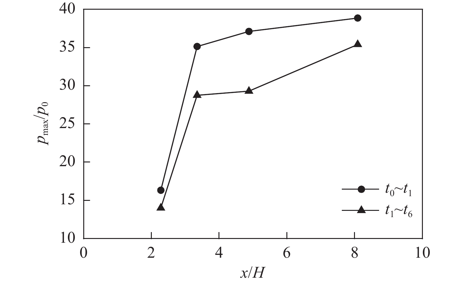 位置 Ma $ P_0^* $/Pa T/K 自由来流 3.0 444899.38 216.65 进气道进口前方 2.992 434888.47 217.40 表 5 不同尺寸模型进气道扩张段出口位置的压强振荡峰值和频率对比