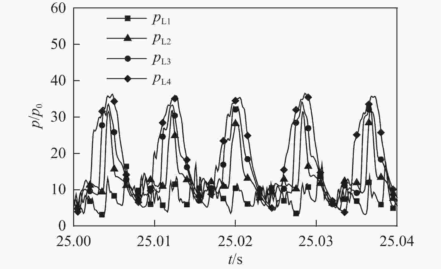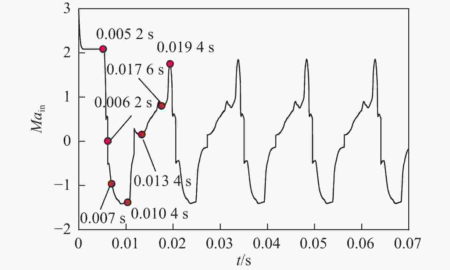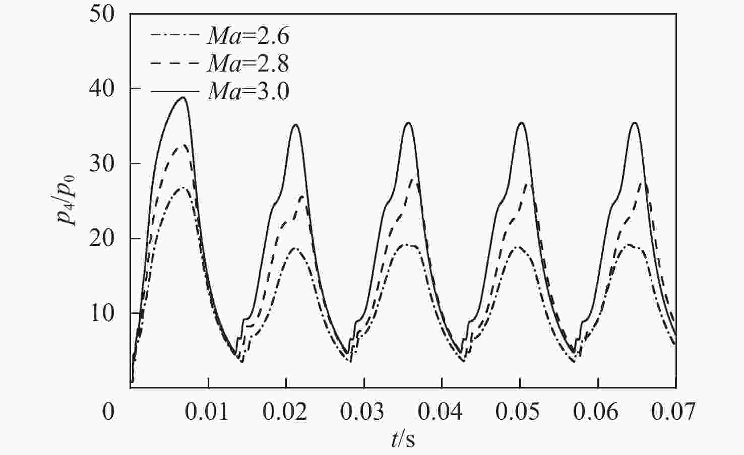 尺寸模型 f/Hz pmax/p0 1∶1(工况3) 69.00 35.41 1∶2.5(工况2) 120.47 35.40 表 6 不同马赫数下进气道p4监测点的压强振荡频率仿真值与理论值对比