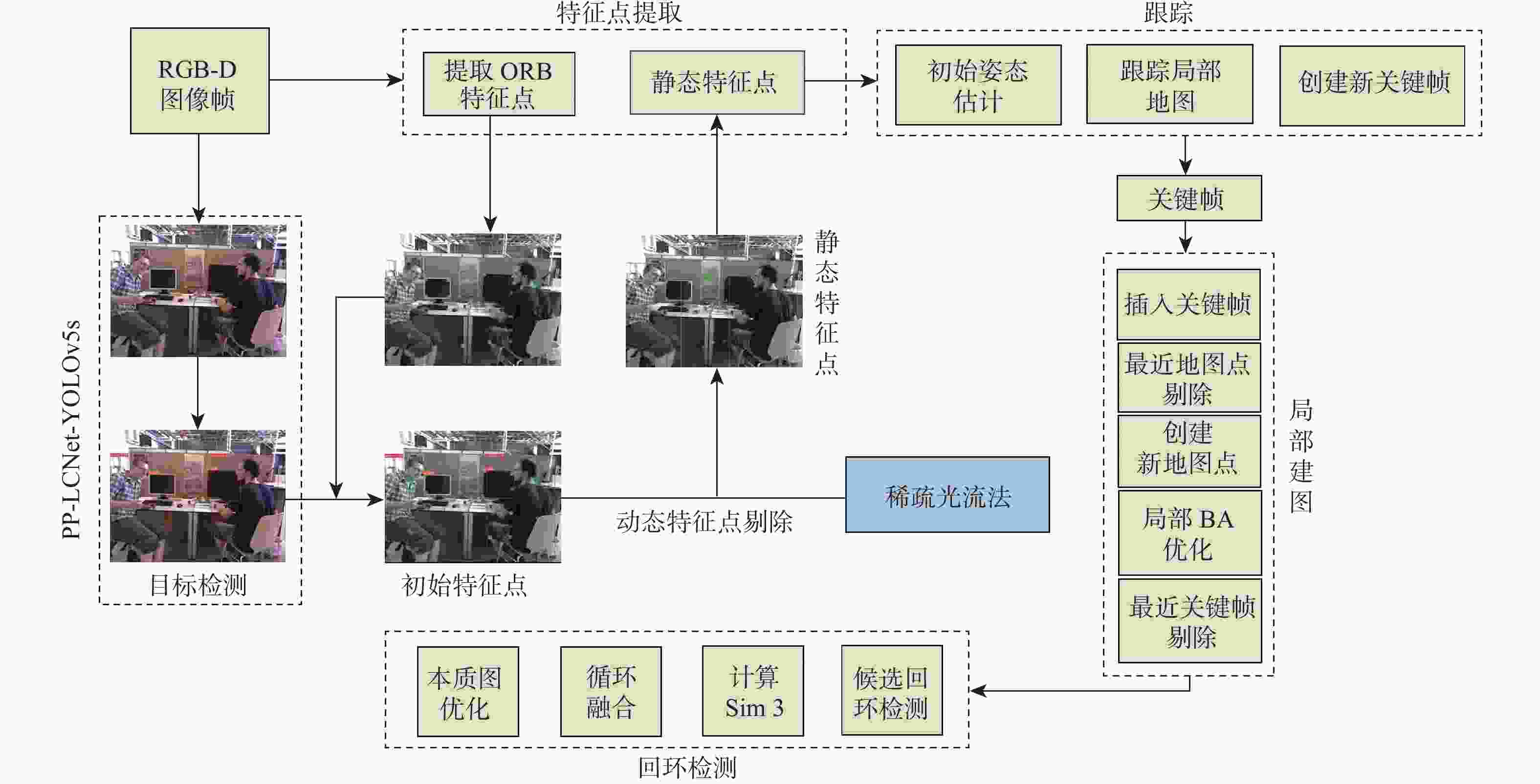 [1] 田野, 陈宏巍, 王法胜, 等. 室内移动机器人的SLAM算法综述[J]. 计算机科学, 2021, 48(9): 223-234.TIAN Y, CHEN H W, WANG F S, et al. Overview of SLAM algorithms for mobile robots[J]. Computer Science, 2021, 48(9): 223-234(in Chinese). [2] CAMPOS C, ELVIRA R, RODRÍGUEZ J J G, et al. ORB-SLAM3: an accurate open-source library for visual, visual-inertial, and multimap SLAM[J]. IEEE Transactions on Robotics, 2021, 37(6): 1874-1890. doi: 10.1109/TRO.2021.3075644 [3] MUR-ARTAL R, TARDÓS J D. ORB-SLAM2: an open-source SLAM system for monocular, stereo, and RGB-D cameras[J]. IEEE Transactions on Robotics, 2017, 33(5): 1255-1262. doi: 10.1109/TRO.2017.2705103 [4] GOMEZ-OJEDA R, MORENO F A, ZUÑIGA-NOËL D, et al. PL-SLAM: a stereo SLAM system through the combination of points and line segments[J]. IEEE Transactions on Robotics, 2019, 35(3): 734-746. doi: 10.1109/TRO.2019.2899783 [5] 张有全, 祁宇明, 邓三鹏, 等. 直接法和共视图优化的视觉惯性SLAM系统研究[J]. 自动化与仪器仪表, 2022(5): 197-203.ZHANG Y Q, QI Y M, DENG S P, et al. Research on visual-inertial SLAM system based on direct method and common view optimization[J]. Automation and Instrumentation, 2022(5): 197-203(in Chinese). [6] ENGEL J, STÜCKLER J, CREMERS D. Large-scale direct SLAM with stereo cameras[C]//Proceedings of the IEEE/RSJ International Conference on Intelligent Robots and Systems. Piscataway: IEEE Press, 2015: 1935-1942. [7] ENGEL J, KOLTUN V, CREMERS D. Direct sparse odometry[J]. IEEE Transactions on Pattern Analysis and Machine Intelligence, 2018, 40(3): 611-625. [8] LI H, JIANG Y H, FAN F Y, et al. RGB-D SLAM based on semantic and geometry for indoor dynamic environments[C]//Proceedings of the China Automation Congress. Piscataway: IEEE Press, 2022: 5581-5586. [9] LONG X D, ZHANG W W, ZHAO B. PSPNet-SLAM: a semantic SLAM detect dynamic object by pyramid scene parsing network[J]. IEEE Access, 2020, 8: 214685-214695. doi: 10.1109/ACCESS.2020.3041038 [10] BESCOS B, FÁCIL J M, CIVERA J, et al. DynaSLAM: tracking, mapping, and inpainting in dynamic scenes[J]. IEEE Robotics and Automation Letters, 2018, 3(4): 4076-4083. doi: 10.1109/LRA.2018.2860039 [11] HE K, GKIOXARI G, DOLLAR P, et al. Mask R-CNN[J]. IEEE Transactions on Pattern Analysis and Machine Intelligence, 2020, 42(2): 386-397. doi: 10.1109/TPAMI.2018.2844175 [12] HAN S Q, XI Z H. Dynamic scene semantics SLAM based on semantic segmentation[J]. IEEE Access, 2020, 8: 43563-43570. doi: 10.1109/ACCESS.2020.2977684 [13] YUAN X, CHEN S. SaD-SLAM: a visual SLAM based on semantic and depth information[C]//Proceedings of the IEEE/RSJ International Conference on Intelligent Robots and Systems. Piscataway: IEEE Press, 2020: 4930-4935. [14] YU C, LIU Z X, LIU X J, et al. DS-SLAM: a semantic visual SLAM towards dynamic environments[C]//Proceedings of the IEEE/RSJ International Conference on Intelligent Robots and Systems. Piscataway: IEEE Press, 2018: 1168-1174. [15] BADRINARAYANAN V, KENDALL A, CIPOLLA R. SegNet: a deep convolutional encoder-decoder architecture for image segmentation[J]. IEEE Transactions on Pattern Analysis and Machine Intelligence, 2017, 39(12): 2481-2495. doi: 10.1109/TPAMI.2016.2644615 [16] LIU Y B, MIURA J. RDS-SLAM: real-time dynamic SLAM using semantic segmentation methods[J]. IEEE Access, 2021, 9: 23772-23785. doi: 10.1109/ACCESS.2021.3050617 [17] SU P, LUO S Y, HUANG X C. Real-time dynamic SLAM algorithm based on deep learning[J]. IEEE Access, 2022, 10: 87754-87766. doi: 10.1109/ACCESS.2022.3199350 [18] ZHANG H, YE M, SUN X. Robust indoor visual-inertial SLAM with pedestrian detection[J]. IEEE Transactions on Instrumentation and Measurement, 2019, 68(10): 3897-3908. [19] MUR-ARTAL R, TARDÓS J D. Visual-inertial monocular SLAM with map reuse[J]. IEEE Robotics and Automation Letters, 2017, 2(2): 796-803. doi: 10.1109/LRA.2017.2653359 -