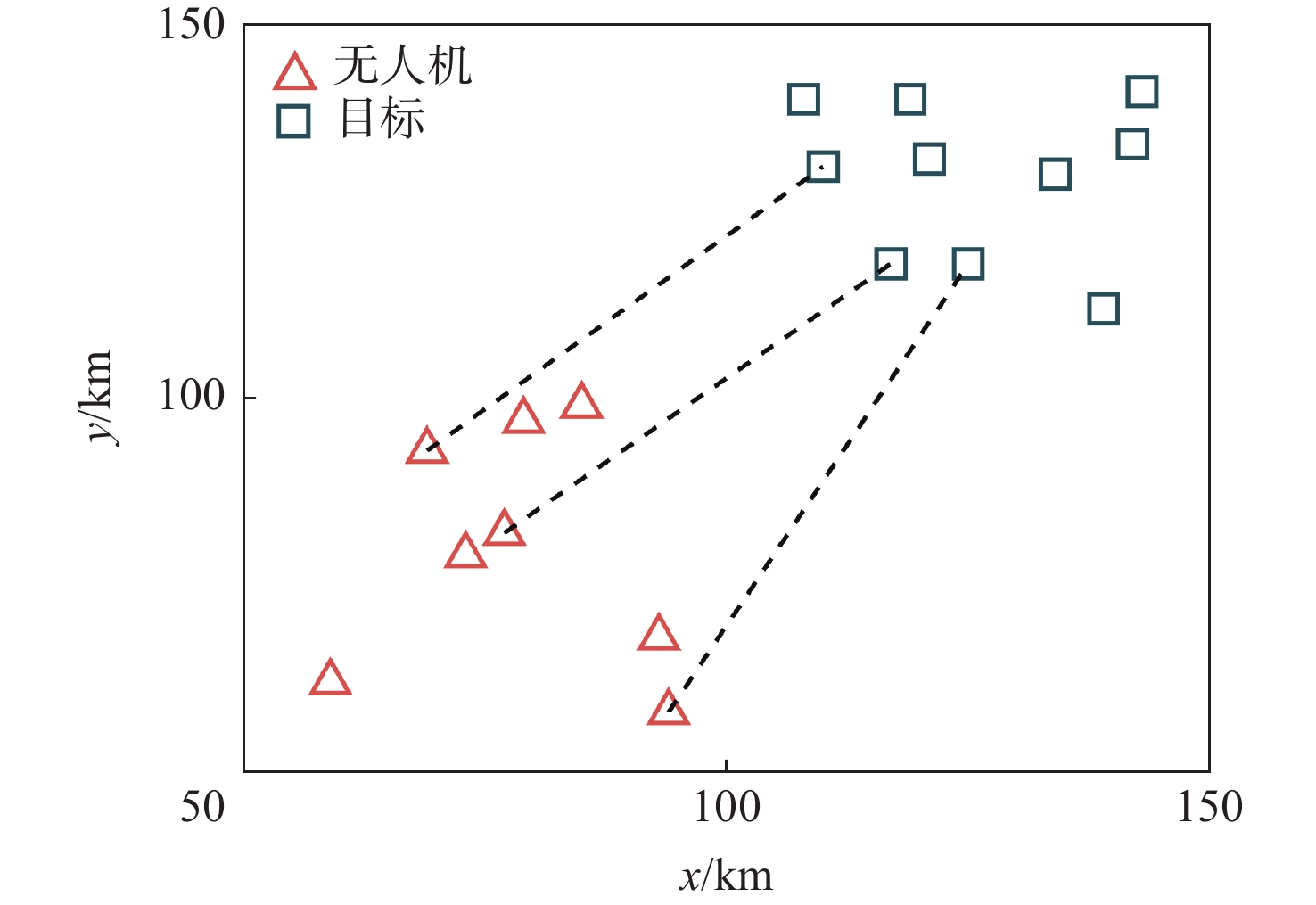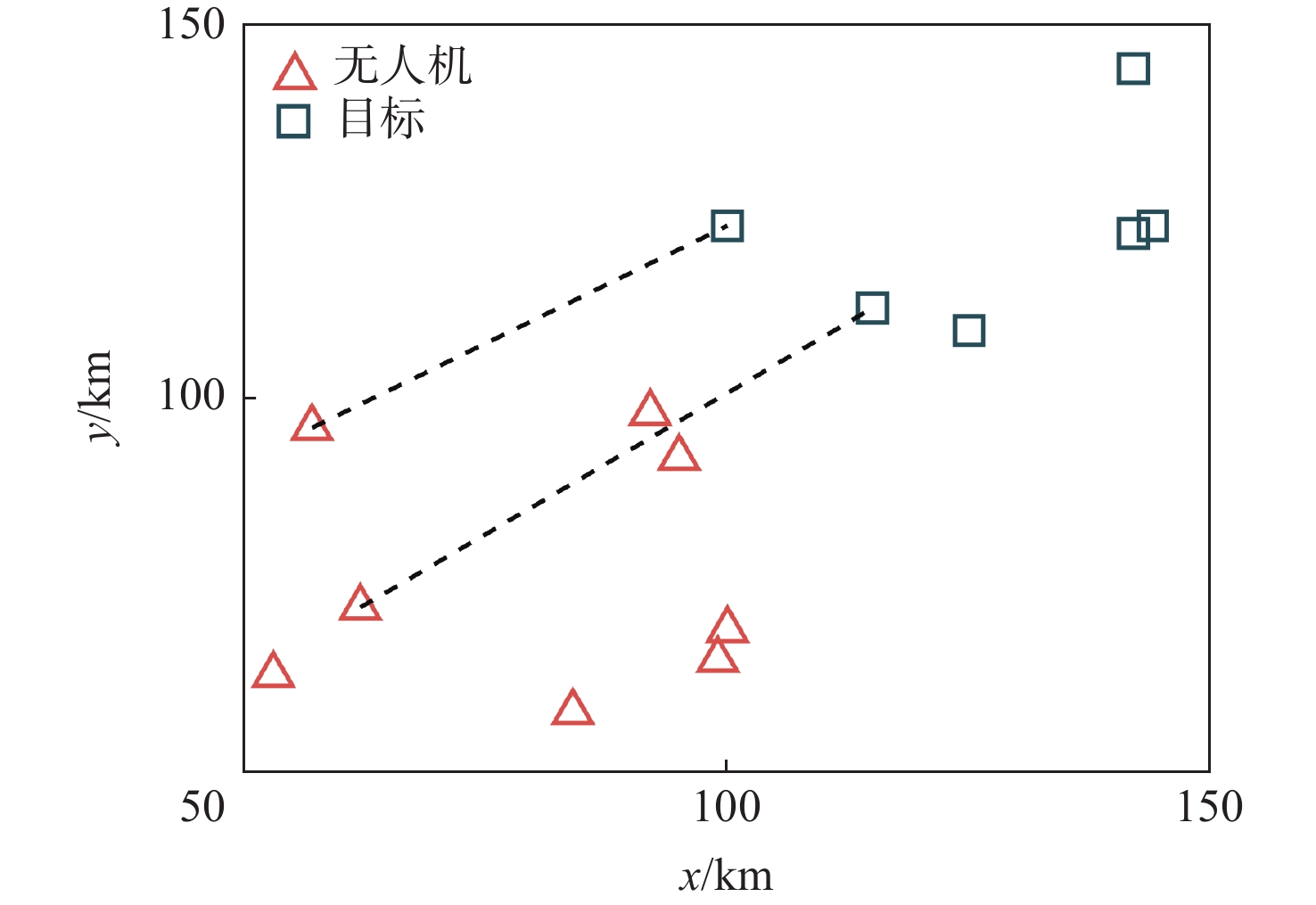 无人机探测 √ × √ √ × √ √ √ 攻击 √ √ × √ √ × √ √ 毁伤评估 × √ × × √ × √ × 注:√表示具备能力,×不具备能力。 表 2 各无人机探测、攻击与毁伤评估任务对各目标的分配结果(场景1)