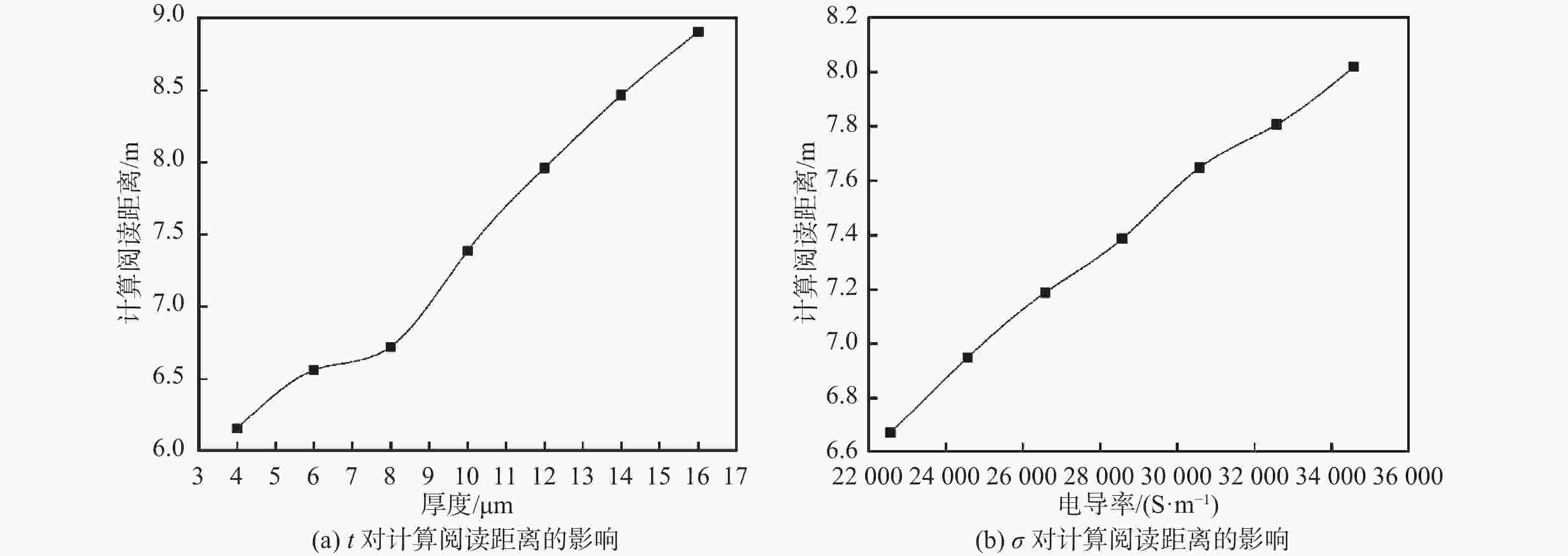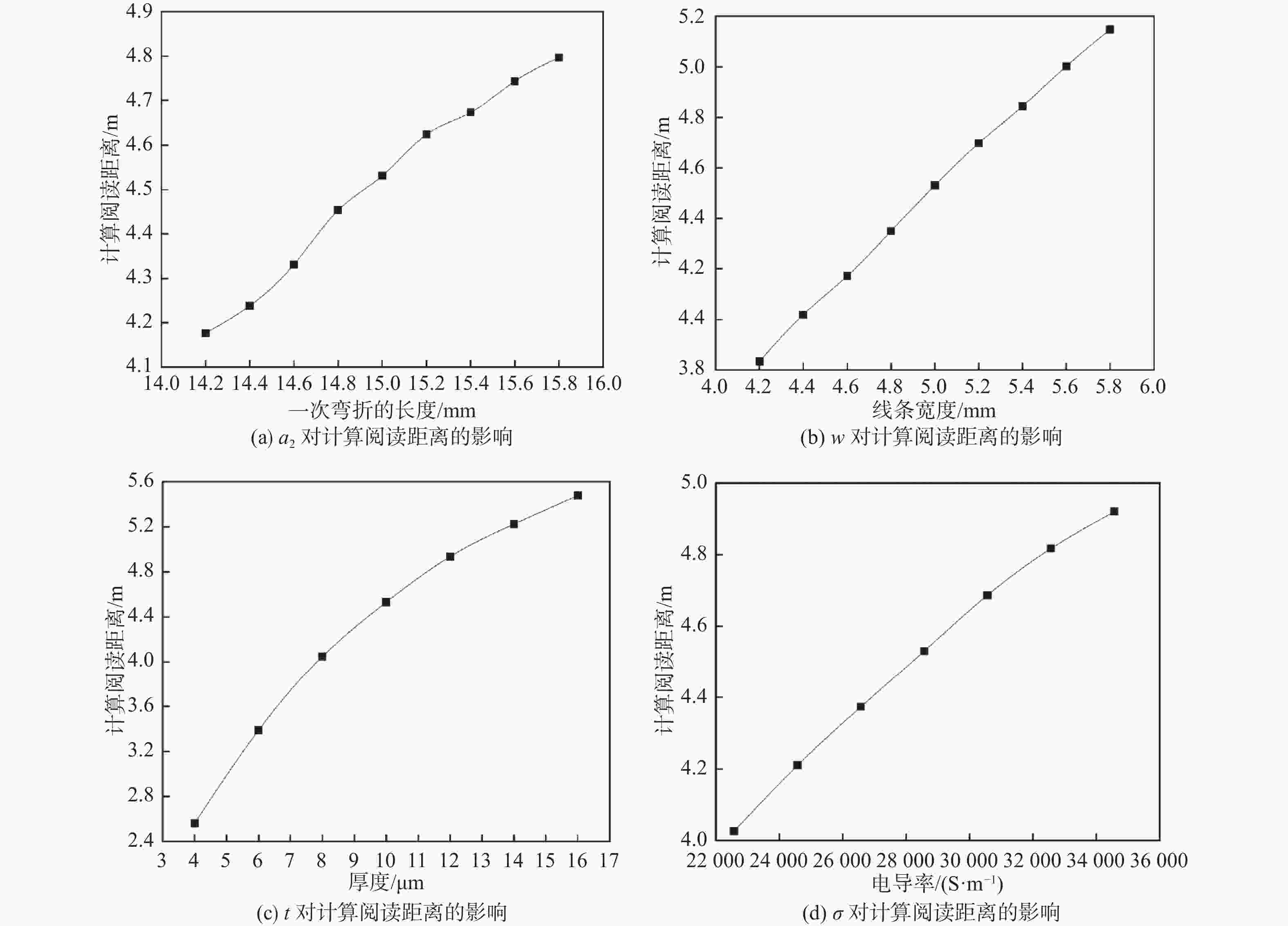 不确定参数的增量式 理论阅读距离增量/m a2+0.8 mm 0.6195 b2+0.8 mm 0.0327 w+0.8 mm 1.314 t+6 μm 2.9177 σ+ 6000 S/m0.8939 表 3 环形偶极子天线不确定性参数的灵敏度分析