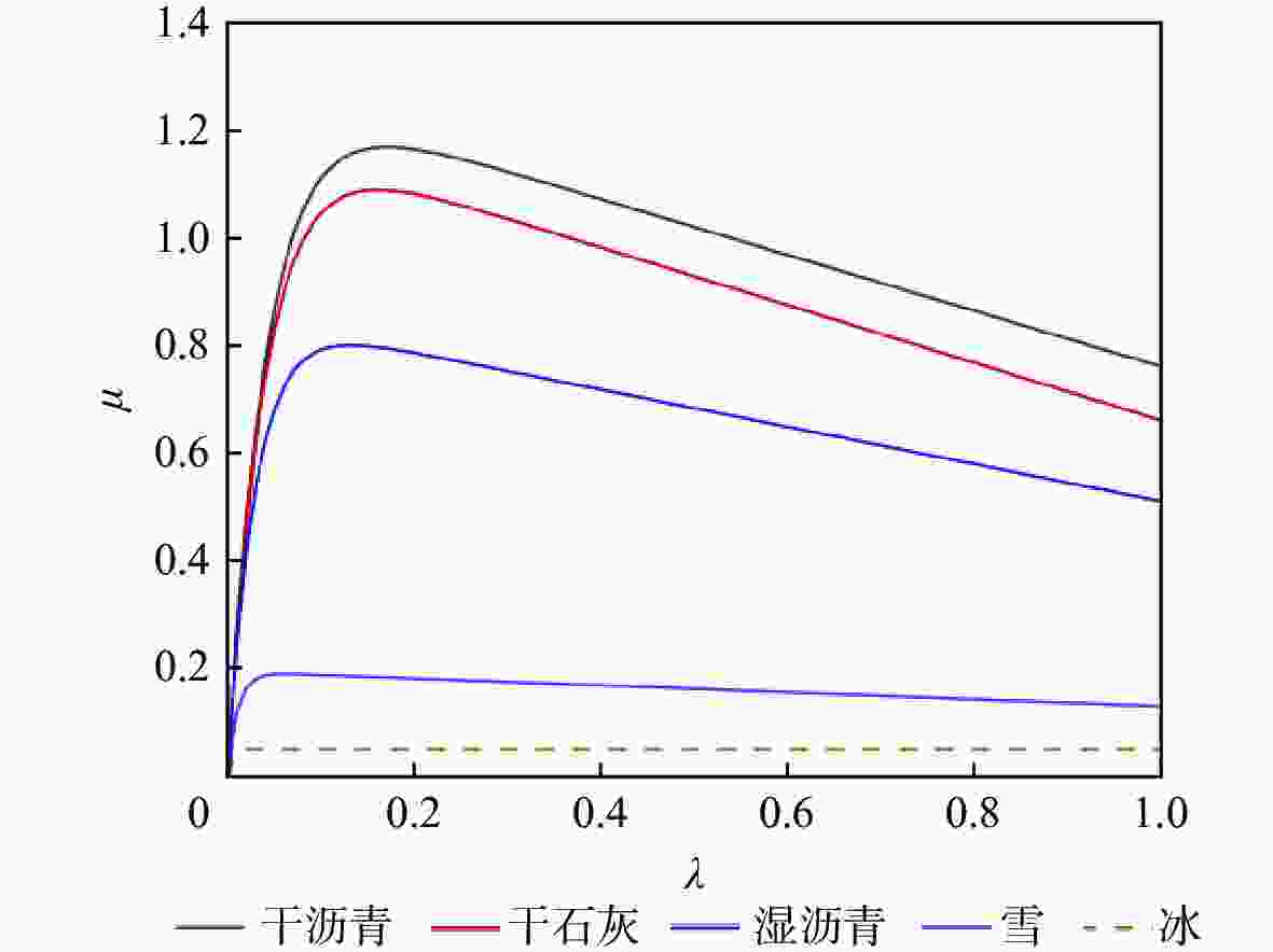 跑道类型 ${c_1}$ ${c_2}$ ${c_3}$ ${c_4}$ 干沥青 1.2801 23.99 0.52 0.03 干石灰 1.1973 25.168 0.5373 0.03 湿沥青 0.857 33.822 0.347 0.03 雪 0.1946 94.129 0.0646 0.03 冰 0.05 306.39 0 0.03 -