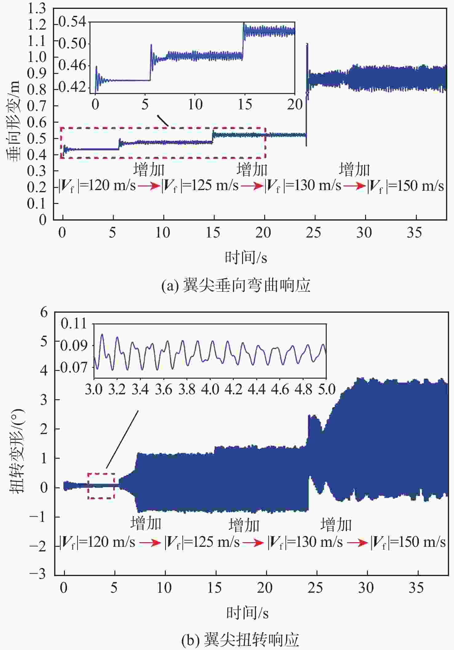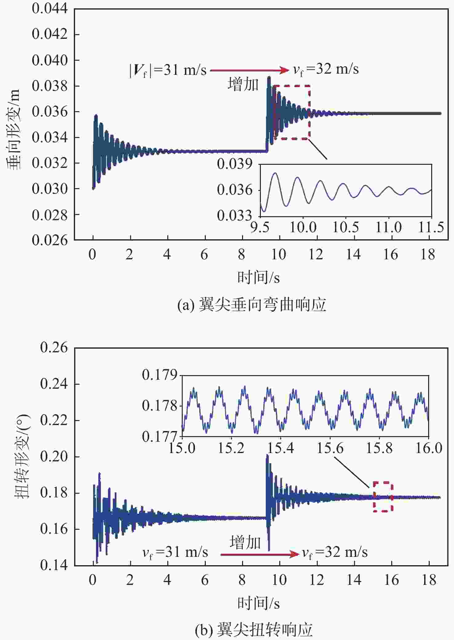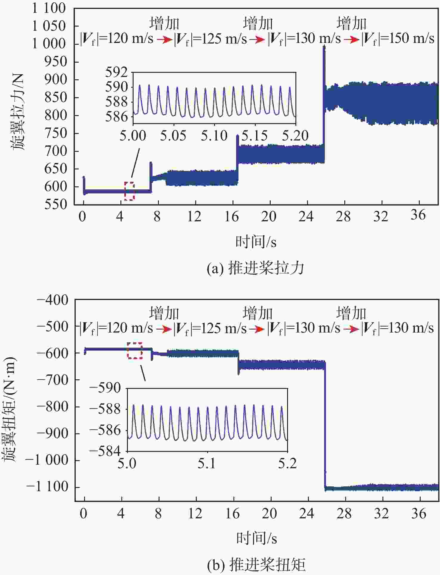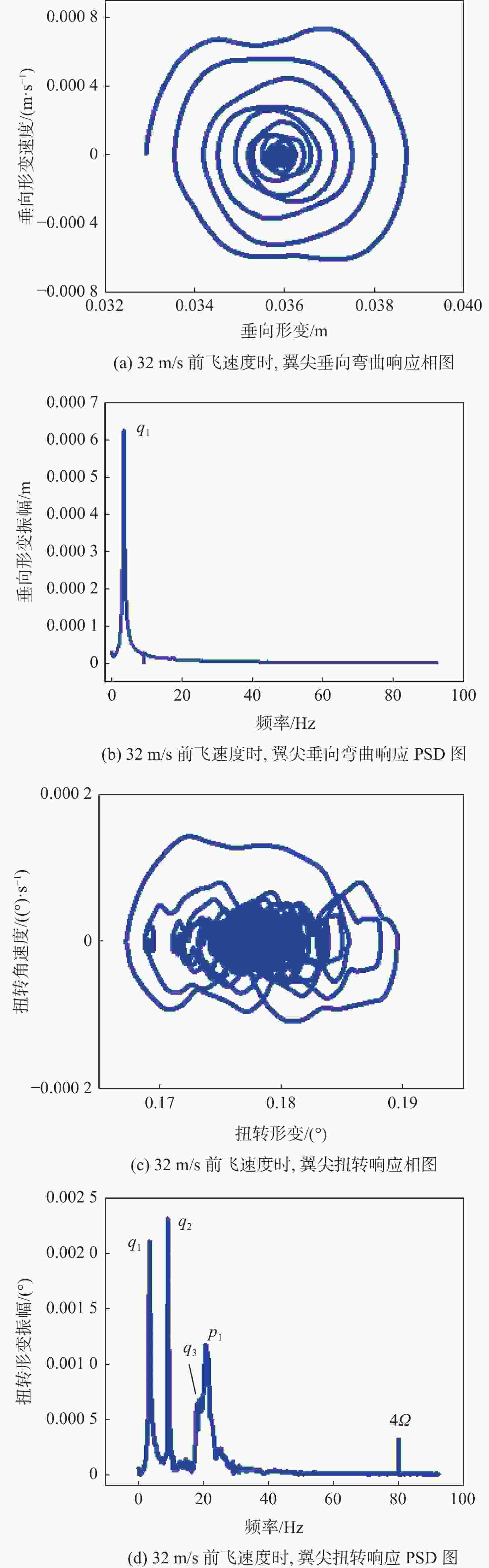 部件 参数 数值 旋翼 片数 3 洛克数 3.83 半径/m 3.82 预锥角/(º) 2.5 转速/(r·min−1) 458 机翼/短舱 一阶垂向弯曲频率q1/Hz 2.4 一阶弦向弯曲频率q2/Hz 5.1 一阶扭转频率p1/Hz 5.9 表 2 耦合系统主要动力学参数
