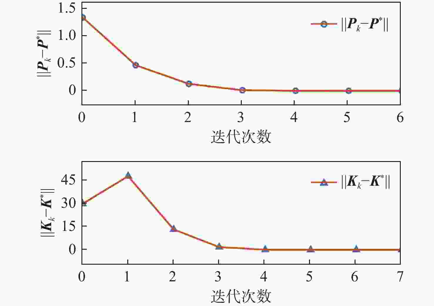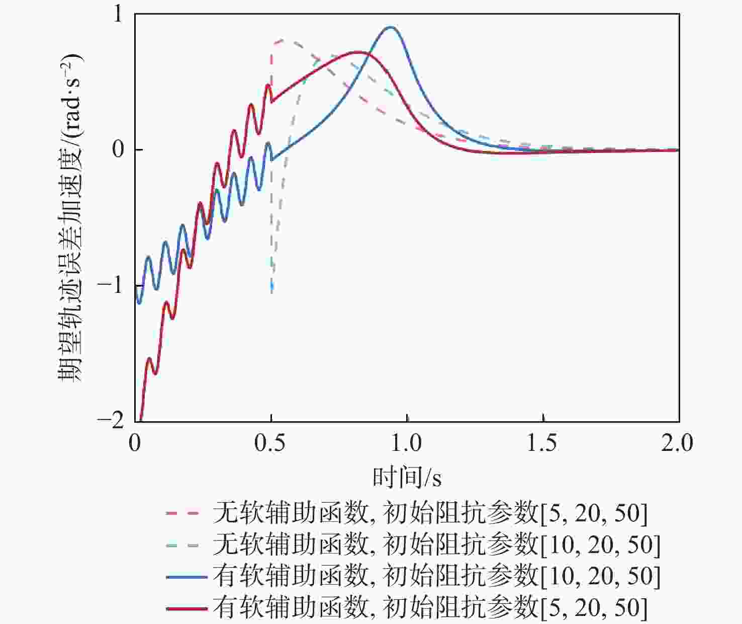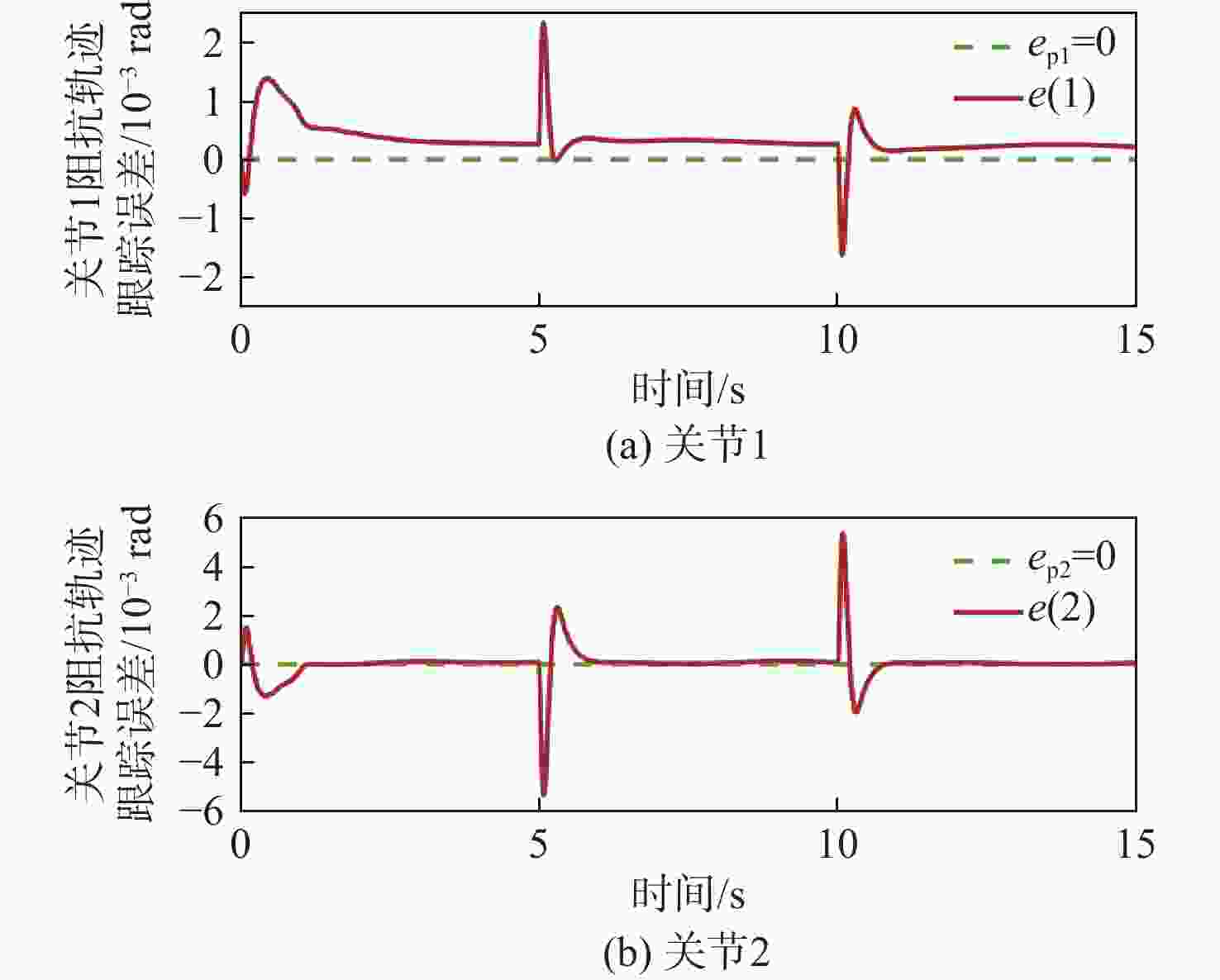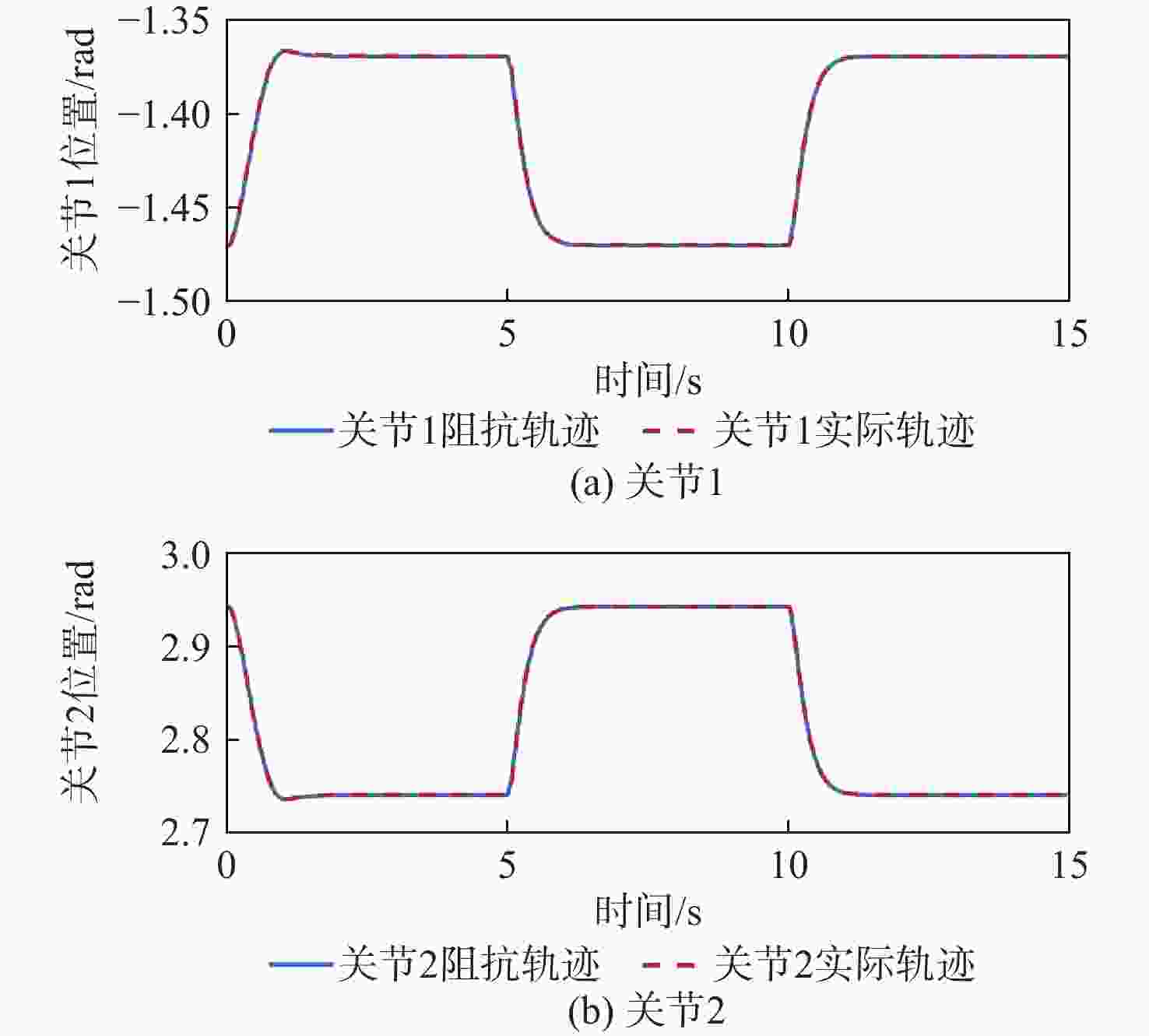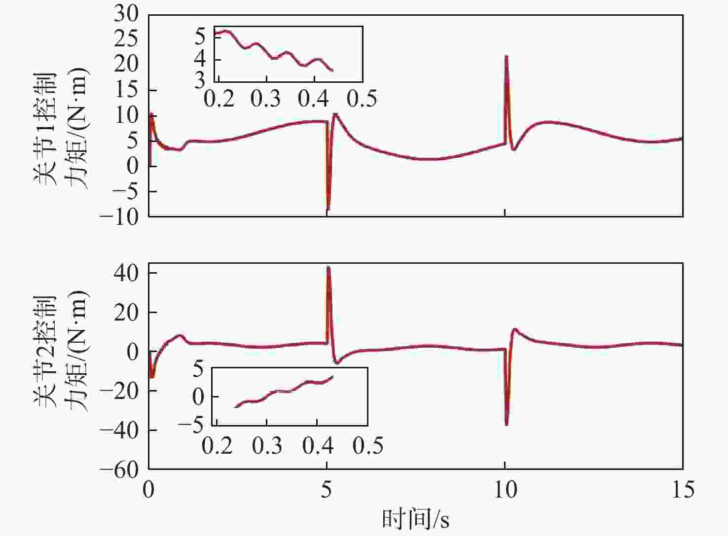 参数 数值 连杆1长度${l_1}$/m $1.0$ 连杆2长度${l_2}$/m $ 1.0 $ 连杆1质量${m_1}$/kg $1.5$ 连杆2质量${m_2}$/kg $1.5$ 连杆1惯性张量${I_1}$/(${\text{kg}} \cdot {{\text{m}}^2}$) $5.0$ 连杆2惯性张量${I_2}$/(${\text{kg}} \cdot {{\text{m}}^2}$) $5.0$ 重力常数$g$/($ {\text{m}}\cdot{{\text{s}}^{-2}} $) $ 9.81 $ -