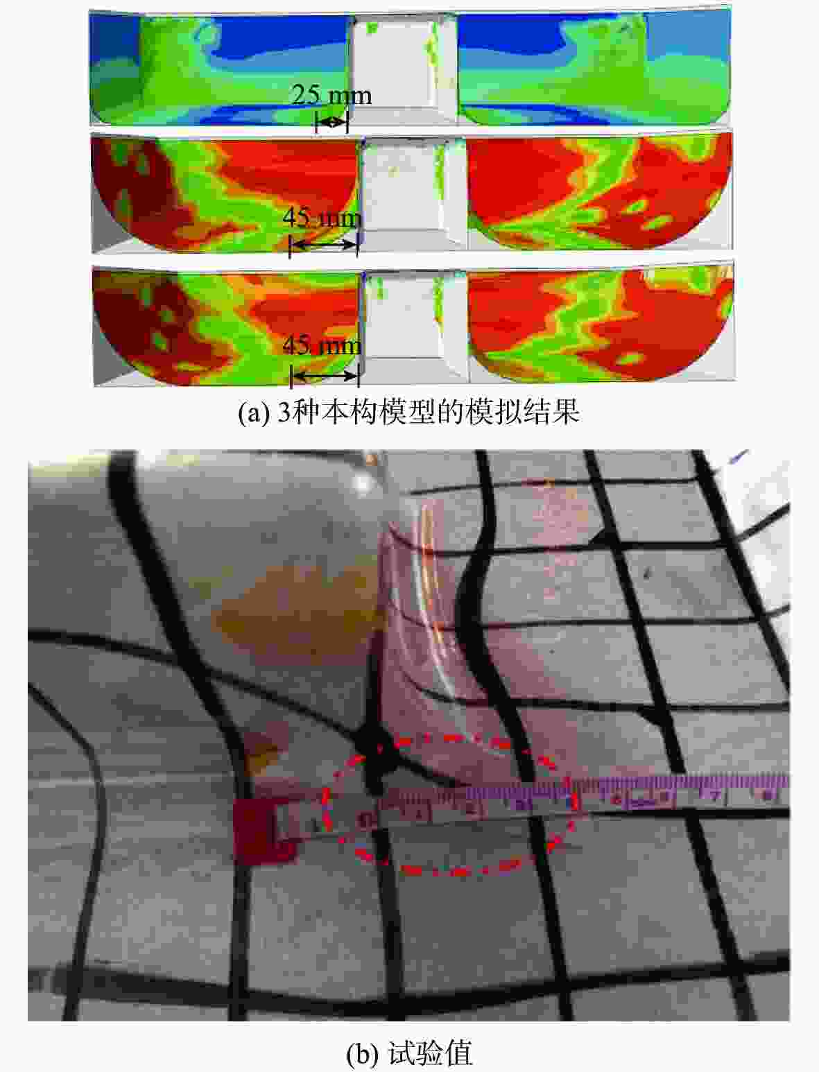 N =2)和Marlow模型对尼龙隔膜和硅橡胶隔膜单轴拉伸数据均具有较高的拟合度,Yeoh模型对尼龙隔膜单轴拉伸数据拟合度较低,对硅橡胶隔膜的拟合度较高。Mooney-Rivlin模型无法准确反映大变形状态下超弹性材料的应力-应变关系,对2种隔膜材料的单轴拉伸数据拟合度都较低。以单轴拉伸数据建立的Ogden和Polynomial模型(N= 2)模型在热隔膜成形模拟时存在过刚现象,而Marlow模型则具有很高的预测精度。Abstract:The selection of the diaphragm constitutive model is directly related to the precision of hot diaphragm forming simulation. In order to analyze the applicability of five hyperelastic constitutive methods to different diaphragm materials, uniaxial tensile tests were carried out on two different types of diaphragm materials (nylon diaphragm and silicone rubber diaphragm) at different temperatures, and the performance differences of the two types of materials were analyzed by stress-strain curves, fracture elongation, and modulus. Five hyperelastic constitutive models were used to fit the data of diaphragm materials in the uniaxial tensile tests, and the data were compared with the simulation data of the uniaxial tension and hot diaphragm forming process of the diaphragm materials. The results indicate that the rubber diaphragm material has a greater fracture elongation than the nylon diaphragm, but its modulus is much smaller than the nylon diaphragm material. The Ogden, Polynomial (