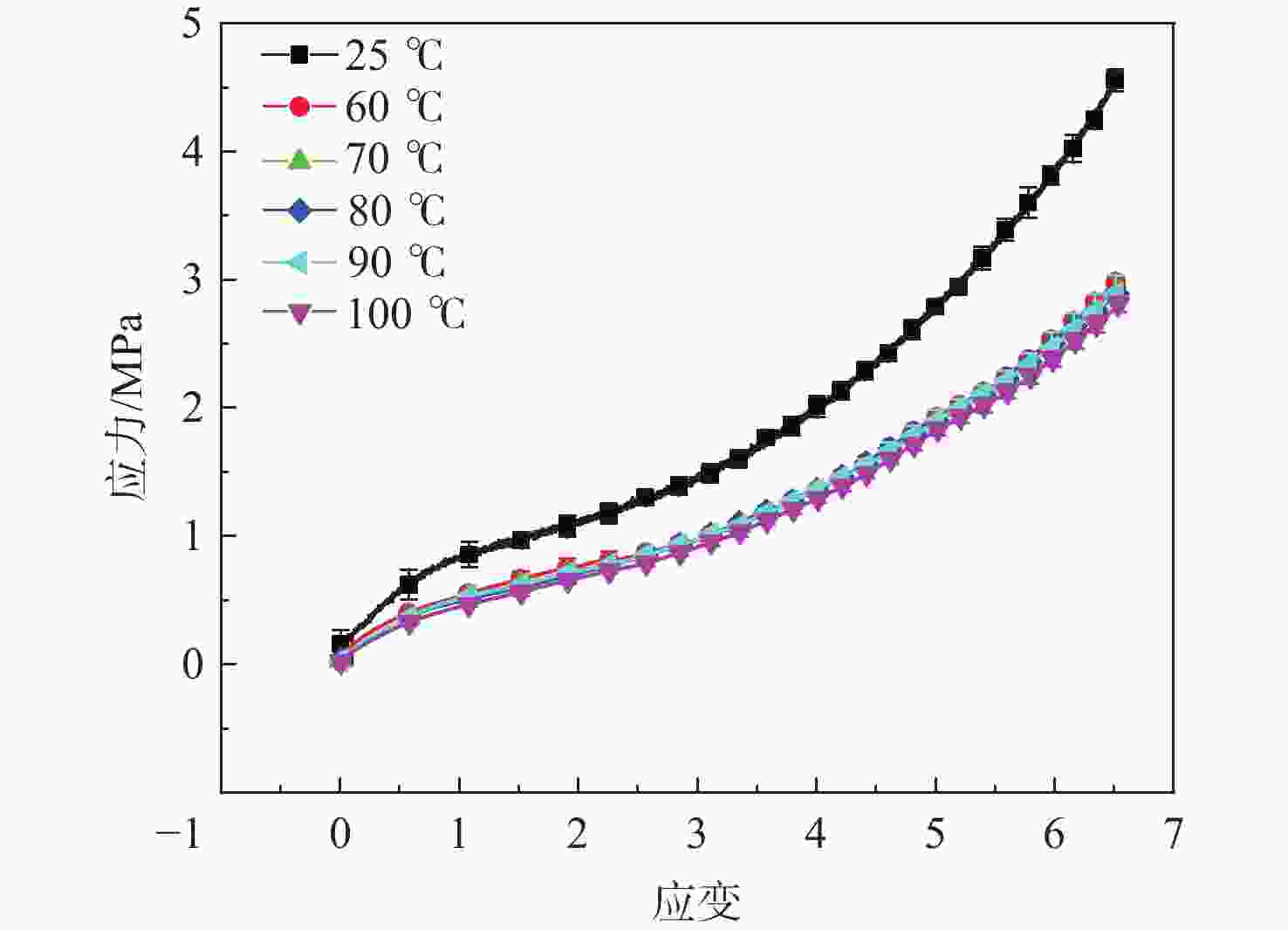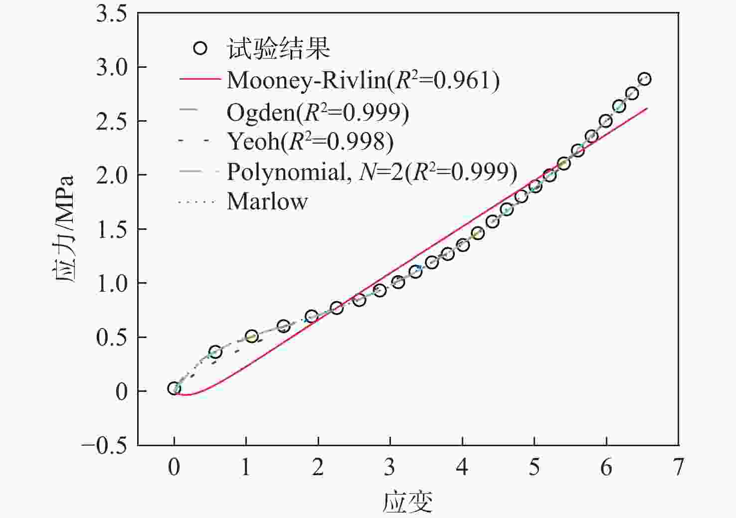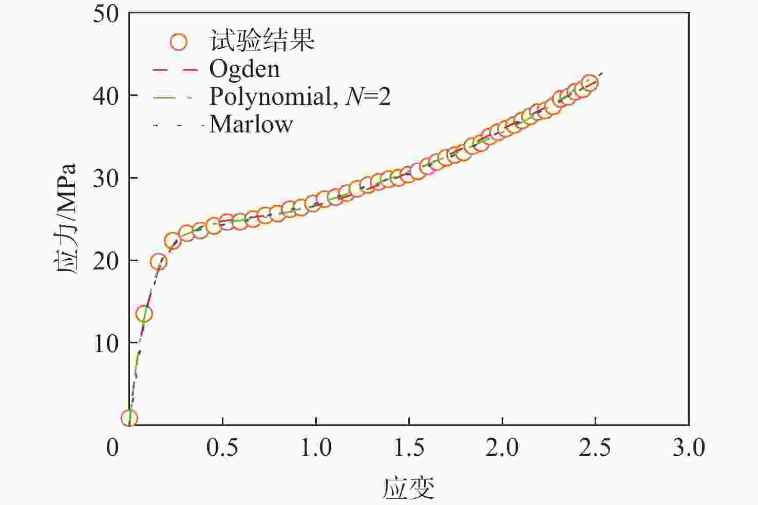 参数/℃ C01 C10 C02 C20 C11 E/MPa 25 −0.07 0.39 −0.10 1.81×10−3 2.87×10−3 1.87 60 −0.22 0.39 −0.12 2.27×10−4 0.01 1.04 70 −0.28 0.43 −0.13 3.69×10−5 0.01 0.90 80 −0.26 0.39 −0.12 −1.56×10−4 0.01 0.80 90 −0.36 0.48 −0.14 −1.27×10−4 0.01 0.72 100 −0.29 0.40 −0.12 −7.75×10−5 0.01 0.65 表 3 尼龙隔膜不同模型的拟合参数