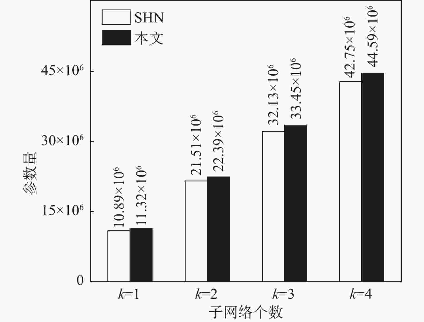 层结构 层参数 层输入维度 层输出维度 初始卷积层 $d_c = 7$,1,1,$s_c = 1$ 512×64×1 512×64×64 En_GAC_1 $ \varepsilon {\text{ = }}10^{-5} $,$d_c = 3$,$s_c = 1$,$p = 2$ 512×64×64 512×32×64 En_GAC_2 $ \varepsilon {\text{ = }}10^{-5} $,$d_c = 3$,$s_c = 1$,$p = 2$ 256×32×64 128×16×128 En_GAC_3 $ \varepsilon {\text{ = }}10^{-5} $,$d_c = 3$,$s_c = 1$,$p = 2$ 128×16×128 64×8×192 En_GAC_4 $ \varepsilon {\text{ = }}10^{-5} $,$d_c = 3$,$s_c = 1$,$p = 2$ 64×8×192 32×4×256 GCT+Conv2d $d_c = 3$,$s_c = 1$,$ \varepsilon {\text{ = }}10^{-5} $ 32×4×256 32×4×320 De_GAC_4 $d_c = 3$,$s_c = 1$,$ \varepsilon {\text{ = }}10^{-5} $ 32×4×320 64×8×256 De_GAC_3 $d_c = 3$,$s_c = 1$,$ \varepsilon {\text{ = }}10^{-5} $ 64×8×256 128×16×192 De_GAC_2 $d_c = 3$,$s_c = 1$,$ \varepsilon {\text{ = }}10^{-5} $ 128×16×192 256×32×128 De_GAC_1 $d_c = 3$,$s_c = 1$,$ \varepsilon {\text{ = }}10^{-5} $ 256×32×128 512×64×64 输出卷积层 $d_c = 3$,1,$s_c = 1$ 512×64×64 512×64×64 Conv2d_1 $d_c = 1$,$s_c = 1$ 512×64×64 512×64×2 Conv2d_2 $d_c = 1$,$s_c = 1$ 512×64×2 512×64×64 Conv2d_3 $d_c = 1$,$s_c = 1$ 512×64×64 512×64×64 SA $d_c = 1$,$s_c = 1$ 512×64×64 512×64×64 表 2 子网络个数对网络分离性能的影响