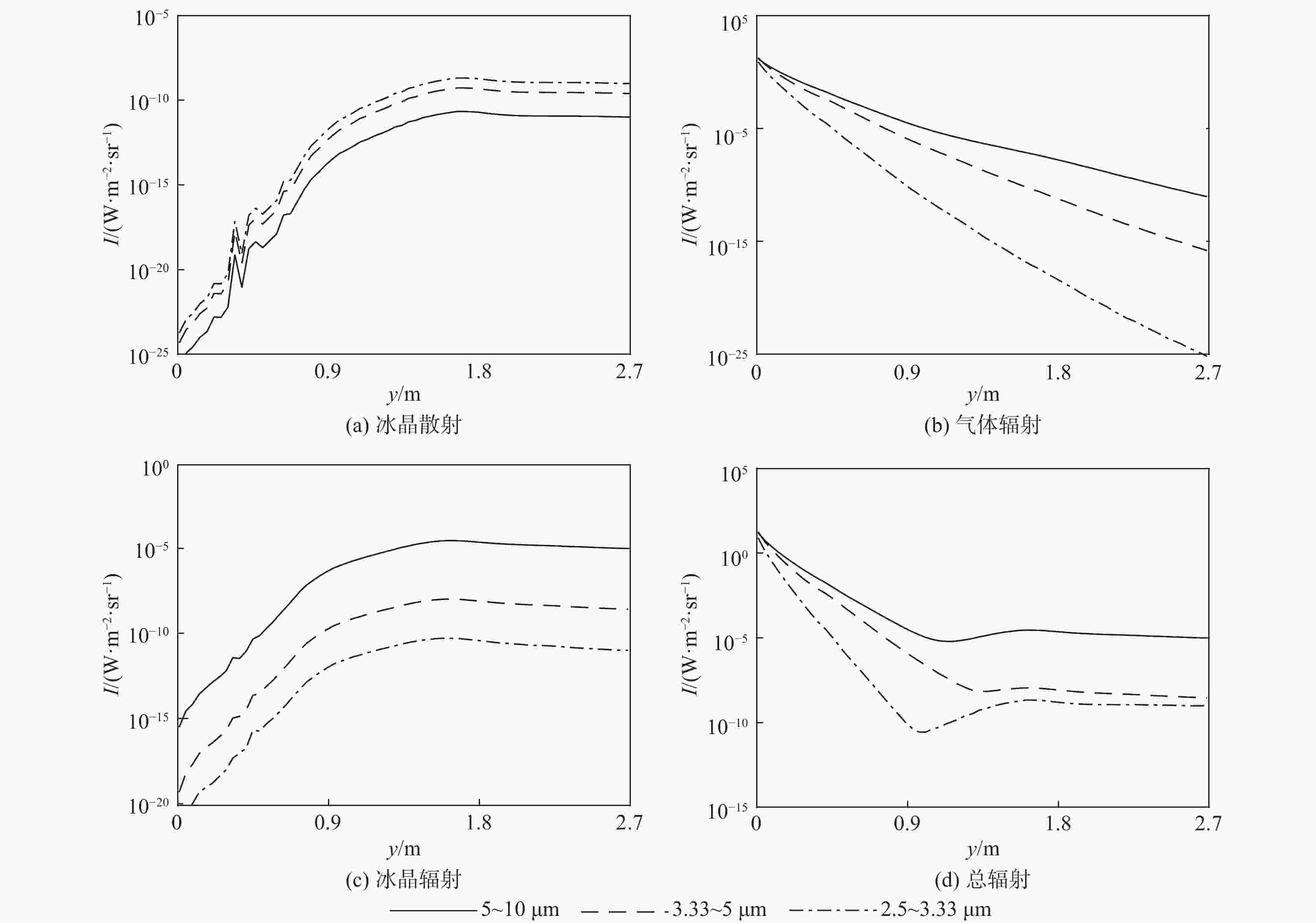 组分 占比/% N2 30.53 H2O 31.13 CO 14.21 H2 20.99 CO2 3.14 表 2 计算域内各波段羽流辐射与散射计算结果