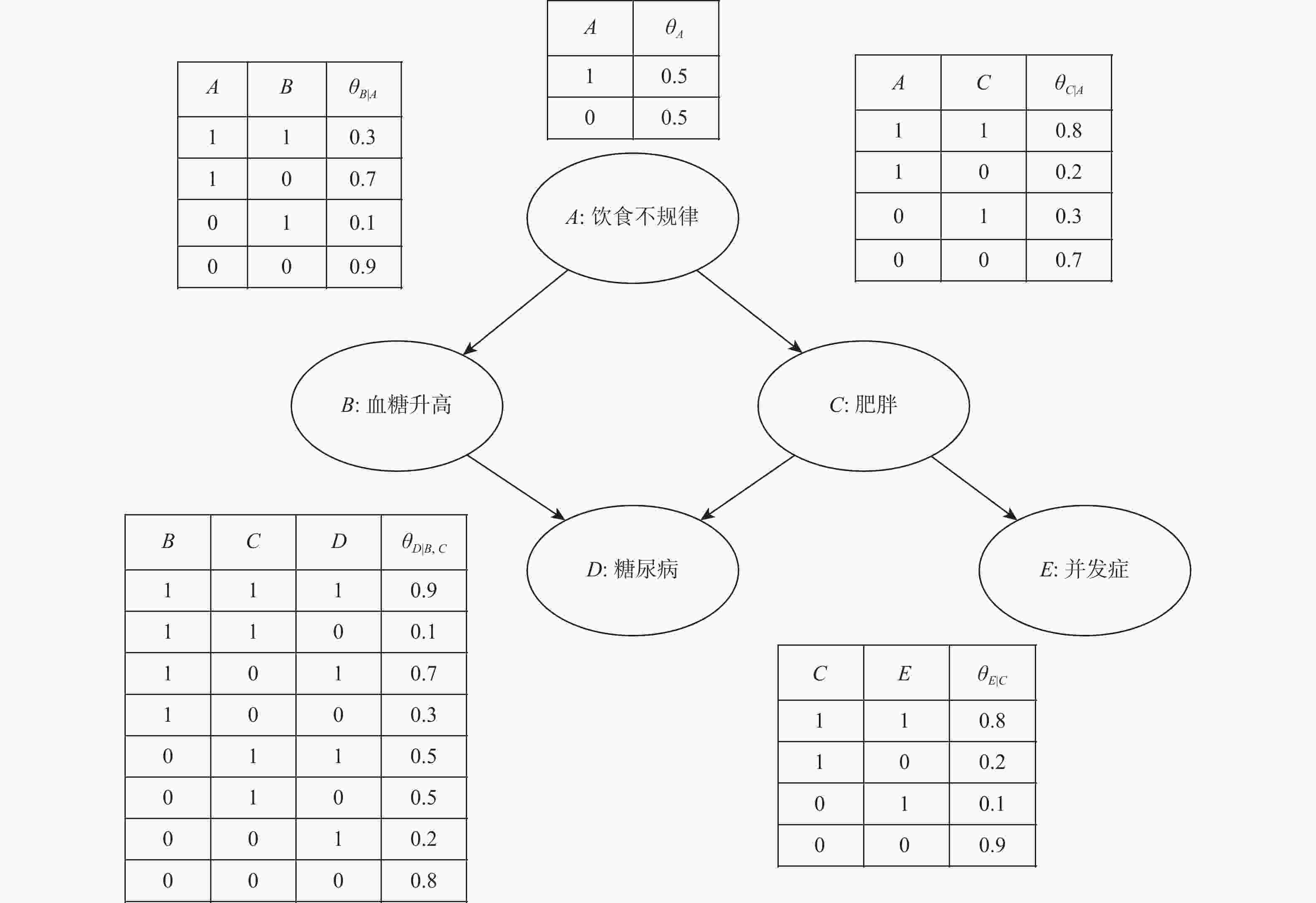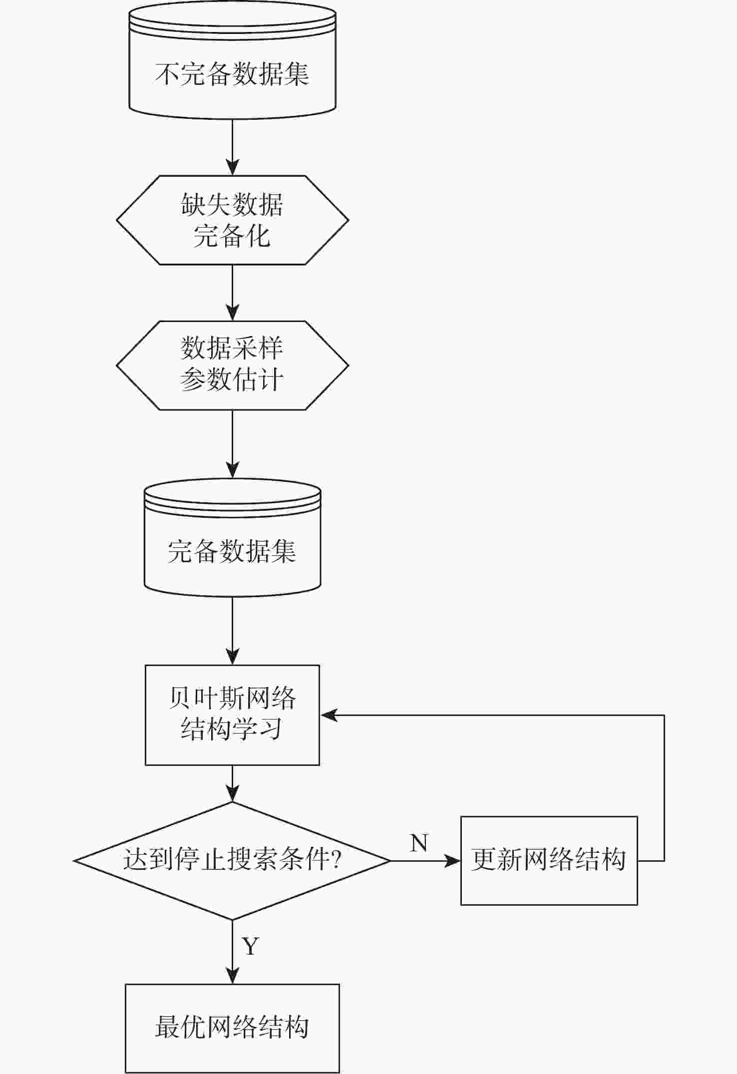 时间 算法 搜索空间 评分函数 搜索策略 1968 Chow-Liu[54] Tree Entropy 1992 K2[7] DAG K2 爬山 1995 TS[55] DAG K2 & BIC 禁忌搜索 1995 HC[56] DAG BDe 爬山 1996 GA[57] Orderings K2 遗传算法 2001 K2SN[58] Orderings K2 爬山 2002 GES[59] Equivalence BDeu 贪婪搜索 2002 ACO-B[60] DAG K2 ACO+局部搜索 2005 SGA[61] Orderings K2 遗传算法 2025 Hybrid MCMC[62] DAG BDeu MCMC 2008 ACO-K2SN[63] Orderings K2 ACO+局部搜索 2009 BN-BQPSO[64] DAG BIC 粒子群优化 2009 I-ACO-B[65] DAG K2 ACO+局部搜索 2010 IBPSO[66] DAG MDL 粒子群优化 2012 GIES[67] Equivalence BIC 贪婪搜索 2013 PSO-K2[68] Orderings K2 粒子群优化 2017 FGES[69] Equivalence BIC 贪婪搜索 2016 BFO-B[47] DAG K2 细菌觅食优化 2017 Partition MCMC[70] DAG BIC MCMC 2020 CIGAR[71] Orderings BDe 遗传算法 2020 K2-I[72] DAG BIC 爬山 2023 FGES-M[73] Equivalence BIC 贪婪搜索 2022 MAHC[53] DAG BIC 爬山 2022 DFA-B[52] DAG K2 萤火虫优化算法 年份 疾病情况 贝叶斯应用实例 文献引用 2017 中枢神经损伤 使用智能分类器算法预测脊髓损伤患者的疼痛类型 [124] 2018 慢性疾病(糖尿病、关节炎等) 使用DBN的逐步隐变量方法预测慢性疾病并发症 [125] 2015 癌症 深度信念网络用于乳腺癌的预测与诊断 [126] 2017 癌症 使用贝叶斯网络和支持向量机进行乳腺癌手术后生存概率预测 [127] 2016 癌症 使用贝叶斯网络建立乳房病变模型图预测良性肿瘤癌变概率 [128] 2015 心脏疾病 通过电子健康记录数据建立贝叶斯网络模型预测心血管病风险 [129] 2017 心脏疾病 高维数据集中使用贝叶斯网络建立因高血压引起的并发症模型 [130] 2018 传染病 使用贝叶斯网络建立登革热感染诊断模型 [131] 表 6 贝叶斯网络在故障诊断、风险评估等工业应用[135-139]