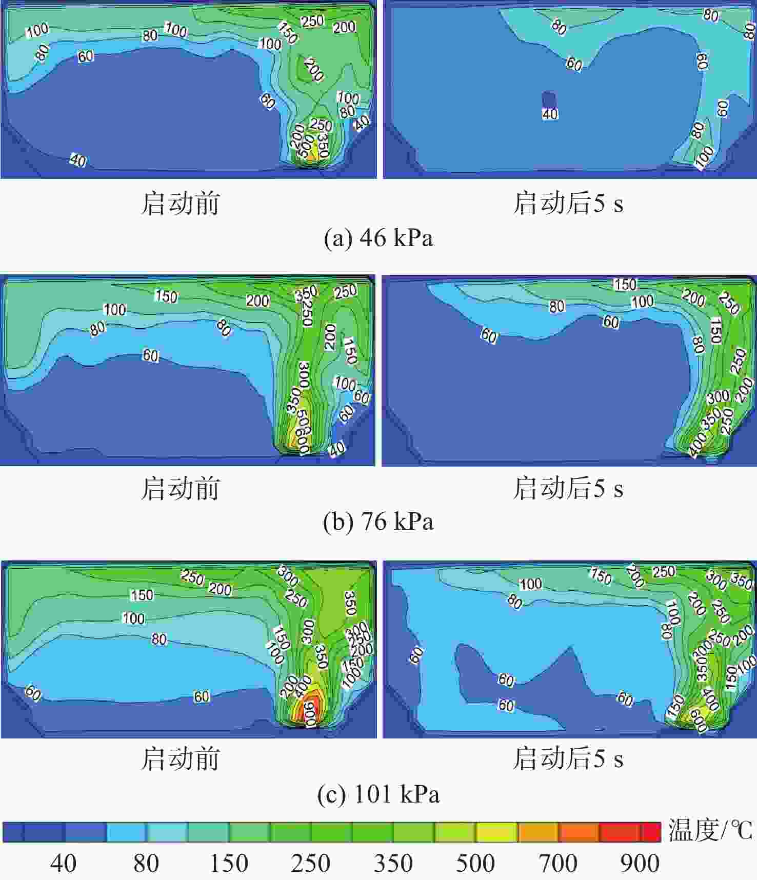 环境压力/ kPa 最高温度/℃ 达到常温时间/s 降温速率/(℃·s−1) 46 638 23 26.0 76 769 43 18.0 101 900 49 17.5 -
