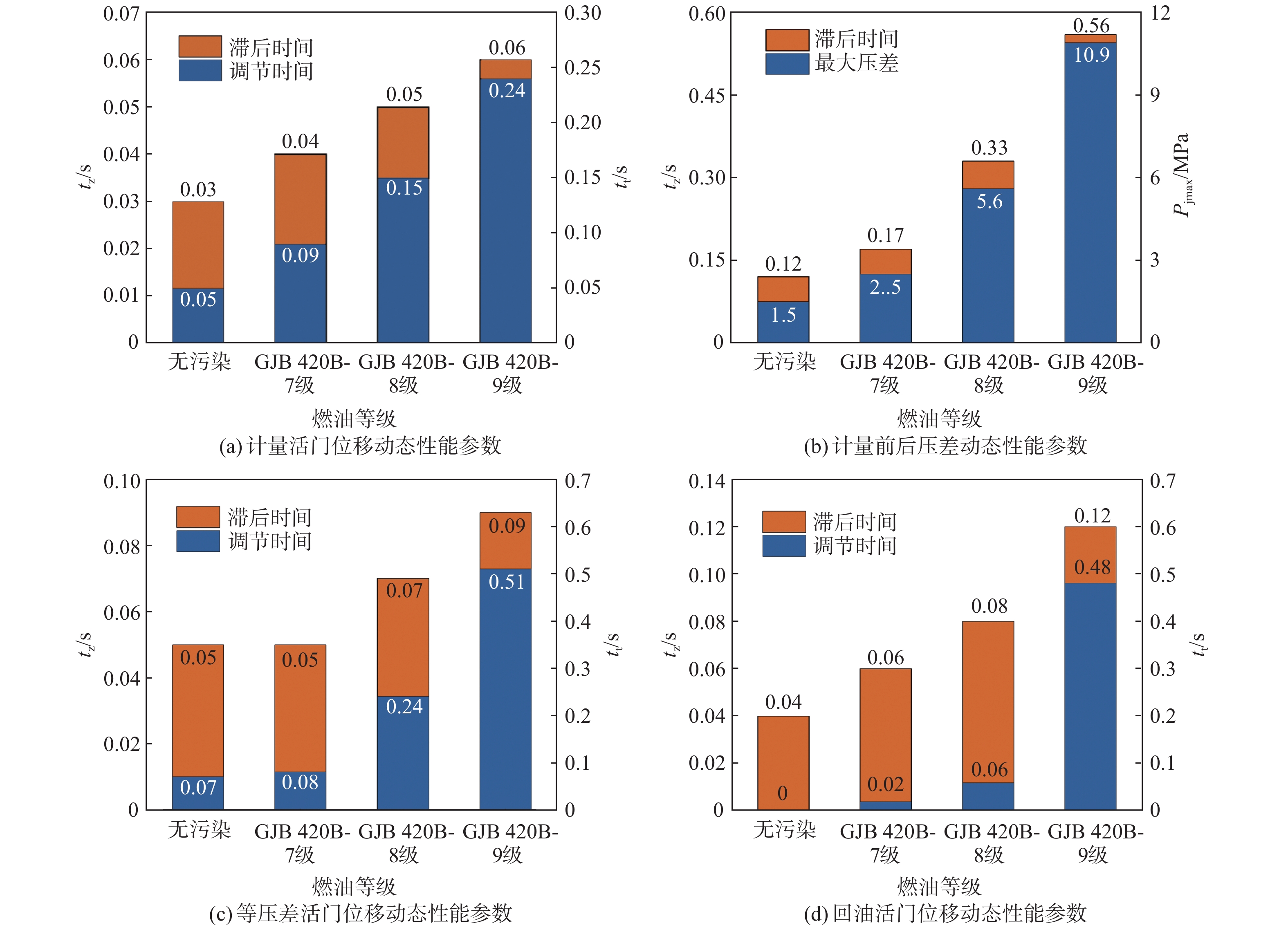 为获得燃油中污染颗粒对燃油计量装置(FMU)工作特性影响的定量规律,并探索一种面向非标燃油部件污染卡滞特性的分析方法,基于OMEGA理论将污染颗粒对燃油部件的作用转化为卡滞力,建立了燃油污染工况下燃油部件和装置的动力学模型。开展了固体污染度等级为GJB 420B-7/8/9级时FMU的工作特性仿真,获得了各等级燃油对其关键部件性能的影响规律。结果表明:所建电液伺服阀污染卡滞模型获得的负载流量响应与标准电液伺服阀污染卡滞模型的结果基本吻合,GJB 420B-9级燃油中计量活门最大卡滞力约140 N,响应时间为无污染时的2倍以上,计量流量最大相对误差增加4倍以上。所提方法可为非标燃油部件和系统的污染卡滞建模提供参考。