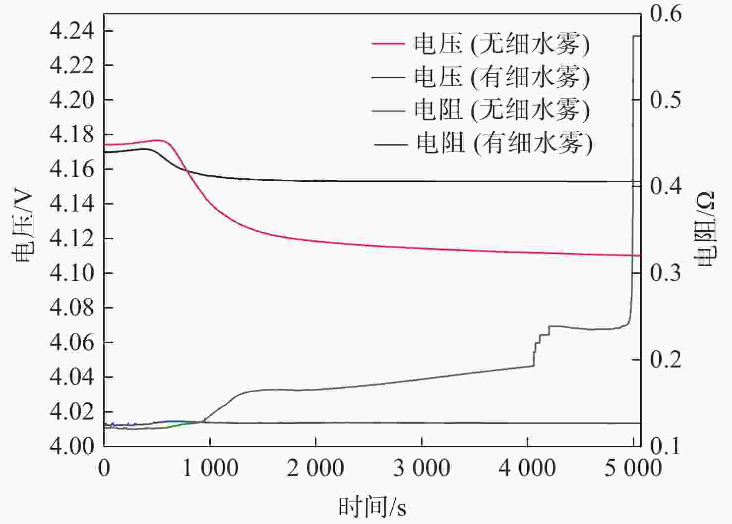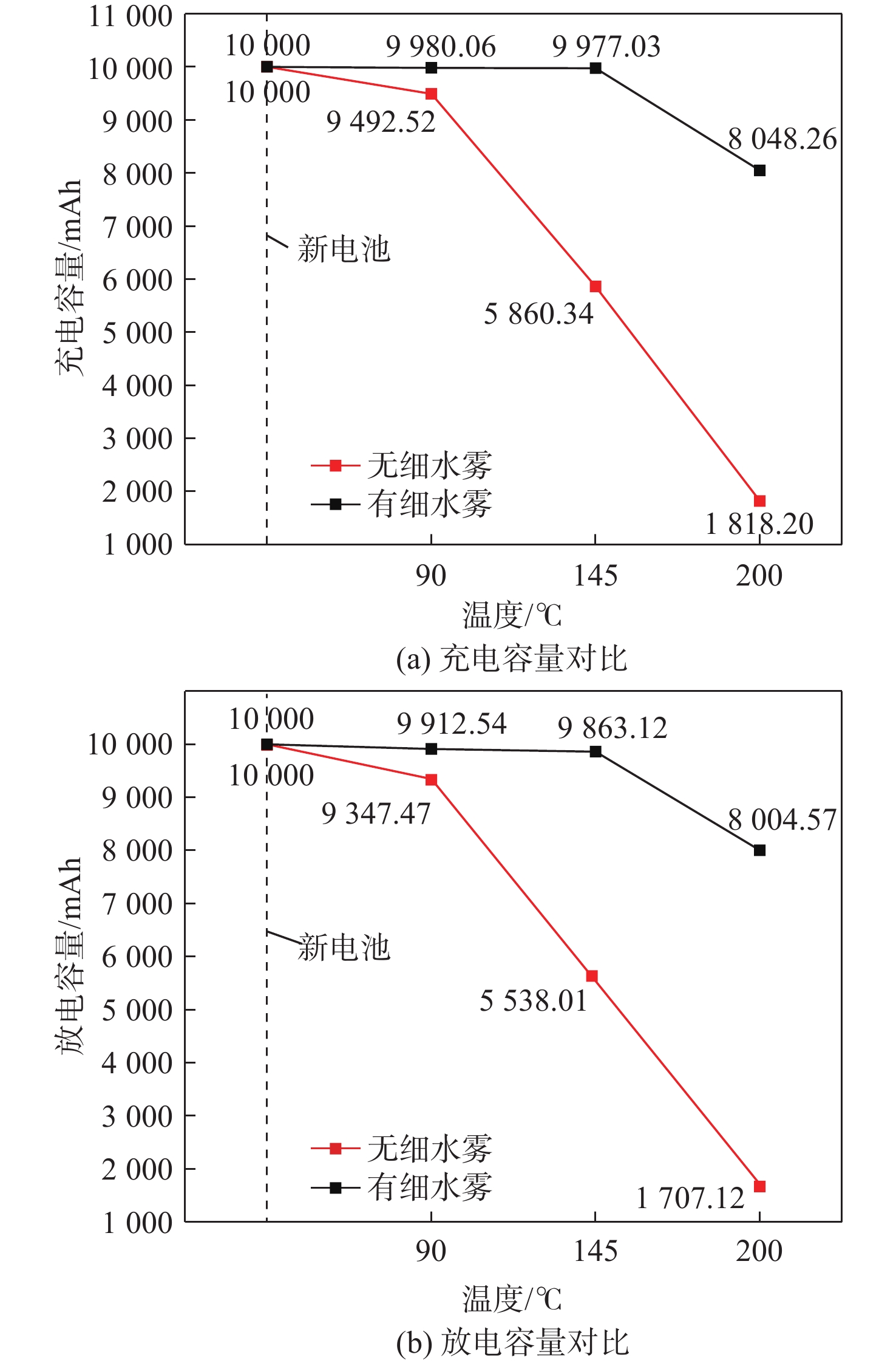 Table 2. Comparison of charge and discharge performance of batteries with or without water mist at different heating degrees